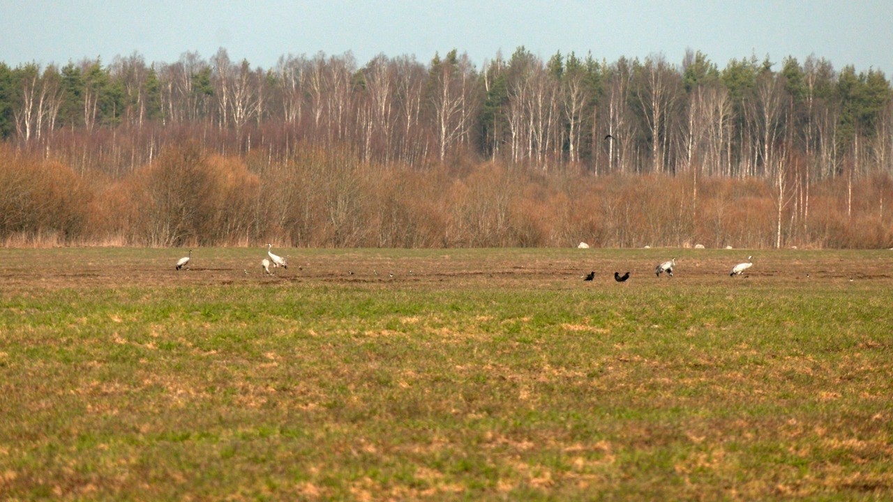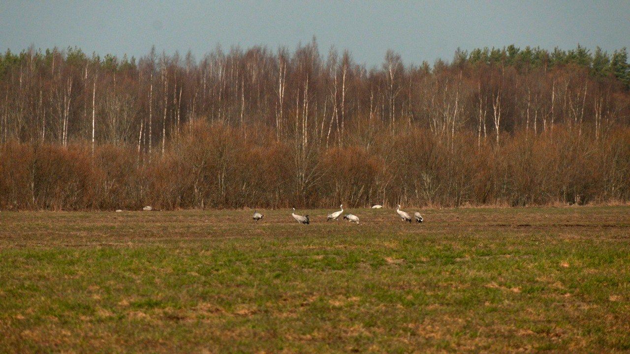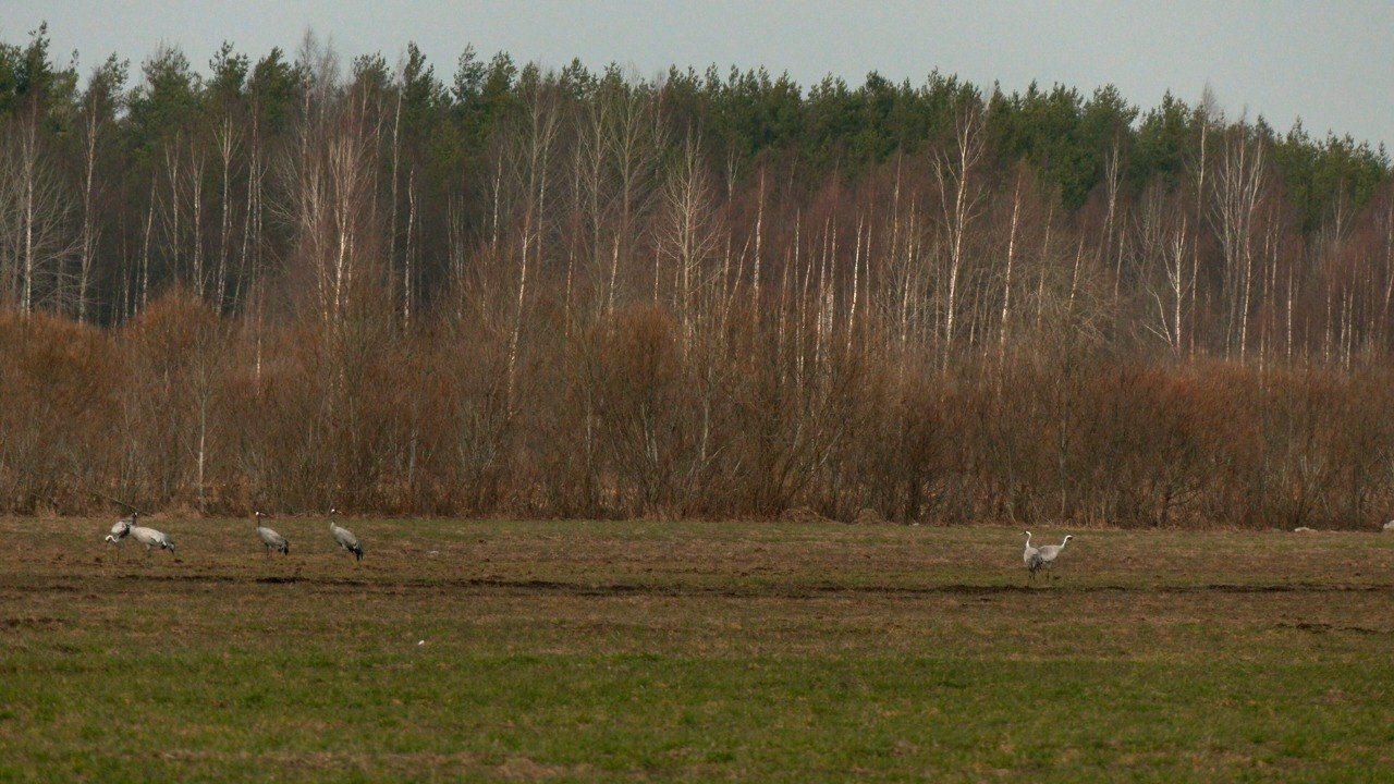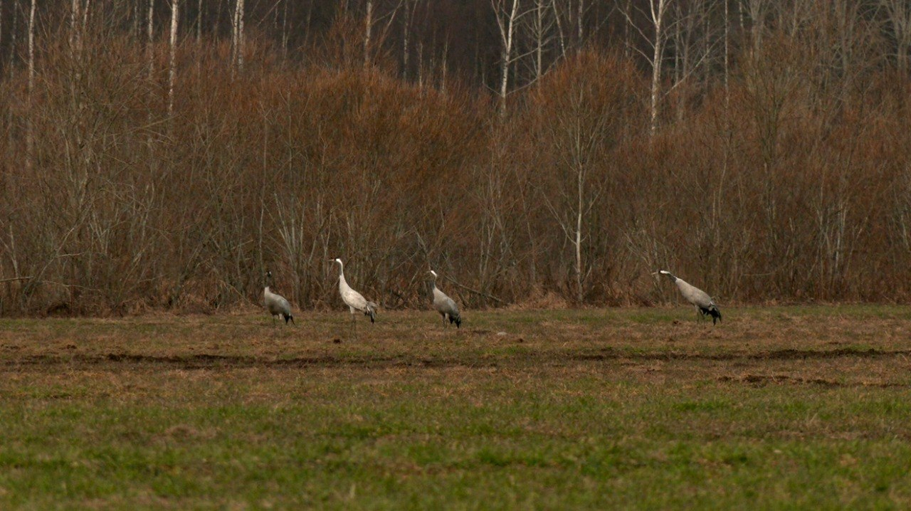 В Ленинградскую область прилетели серые журавли. Автор канала «Каждой твари по паре» Павел Глазков заметил на одном из полей во Всеволожском районе шесть грациозных птиц.