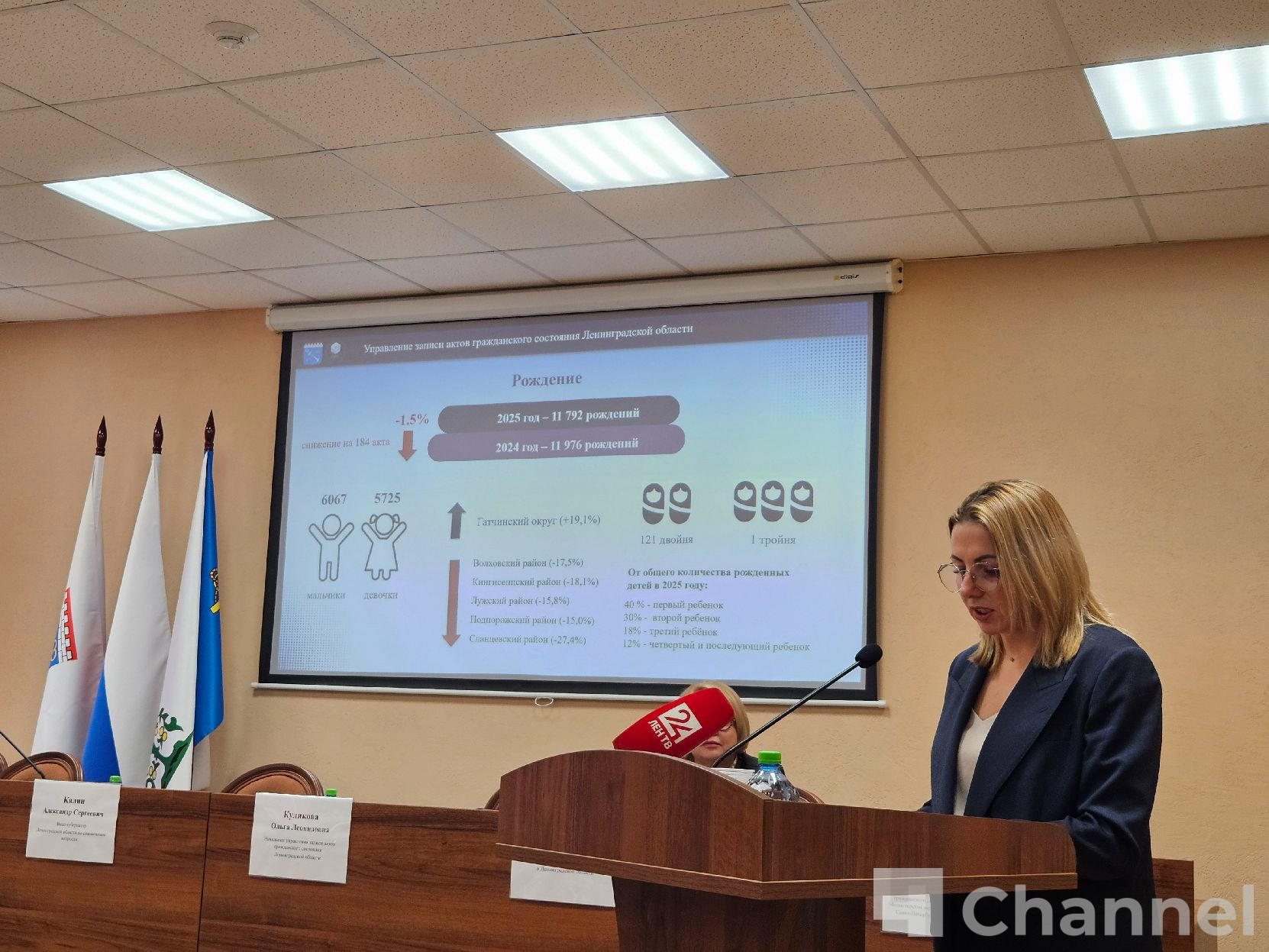 Во Всеволожском районе откроется новый Дворец бракосочетания, где браки будут регистрировать ежедневно. Показатель регистрации рождения немного снизился, однако в Гатчинском округе он вырос после открытия кабинета ЗАГС в Перинатальном центре. В 2025 году в некоторых семьях родилась двойня и тройня. Самыми популярными именами стали Михаил и София. Дополнительно открылся кабинет ЗАГС в поликлинике Мурино. При регистрации рождения новорождённым выдали подарки и памятные медали "Родившемуся на героической Ленинградской земле".