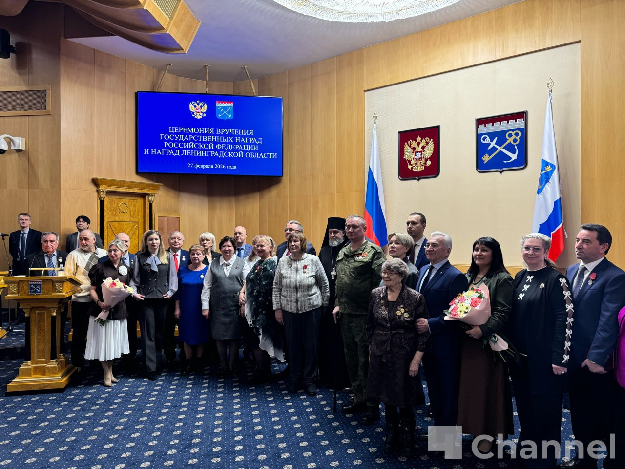 В пятницу, 27 февраля, в здании правительства Ленинградской области прошла торжественная церемония вручения государственных и региональных наград. Перед началом церемонии гостей приветствовал военный оркестр.