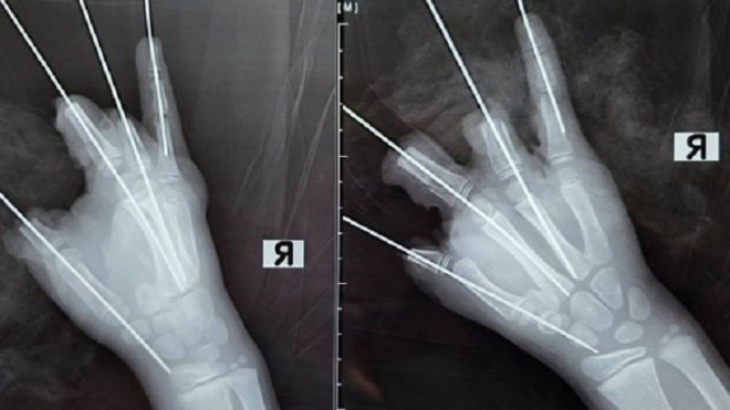 Как рассказали в Педиатрическом университете, взрыв петарды привёл к ампутации четырёх пальцев с большого по безымянный и серьёзным повреждениям мизинца, а также к открытым переломам и вывиху пястной кости. Мягкие ткани кисти были сильно повреждены.