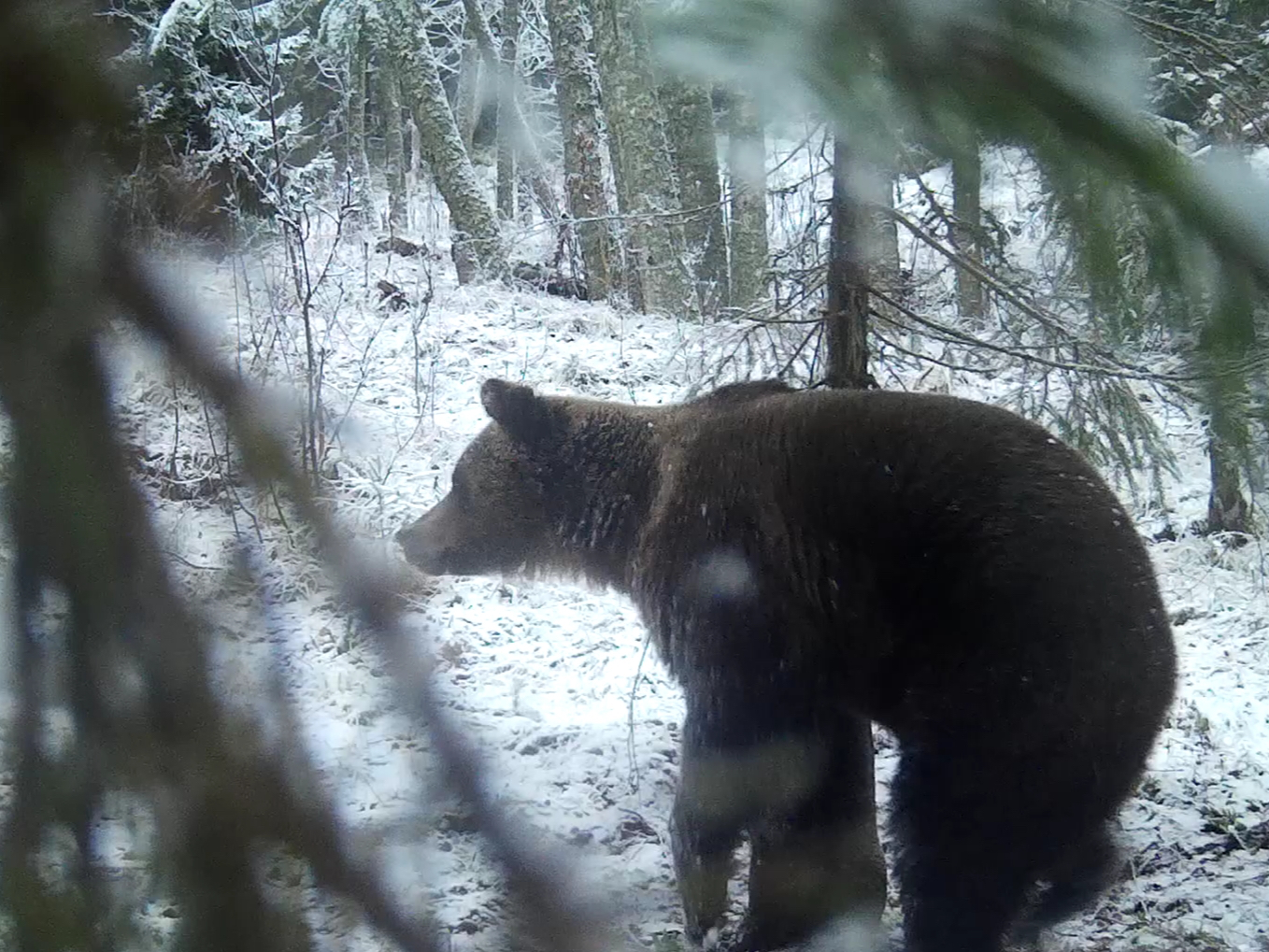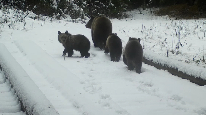 Первые заморозки служат сигналом для молодых самцов и самок. Они начинают искать уединенное и безопасное место для зимнего сна. При этом взрослые косолапые еще могут задерживаться у мест кормежки. Они уйдут на зимовку уже по снегу.