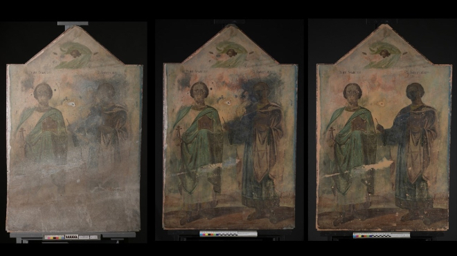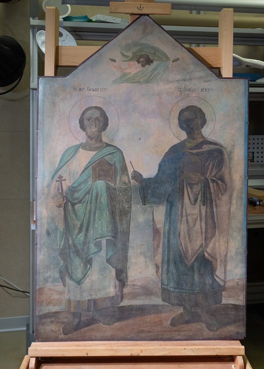 В Международном центре реставрации обновляют икону XIX века «Косьма и Дамиан»