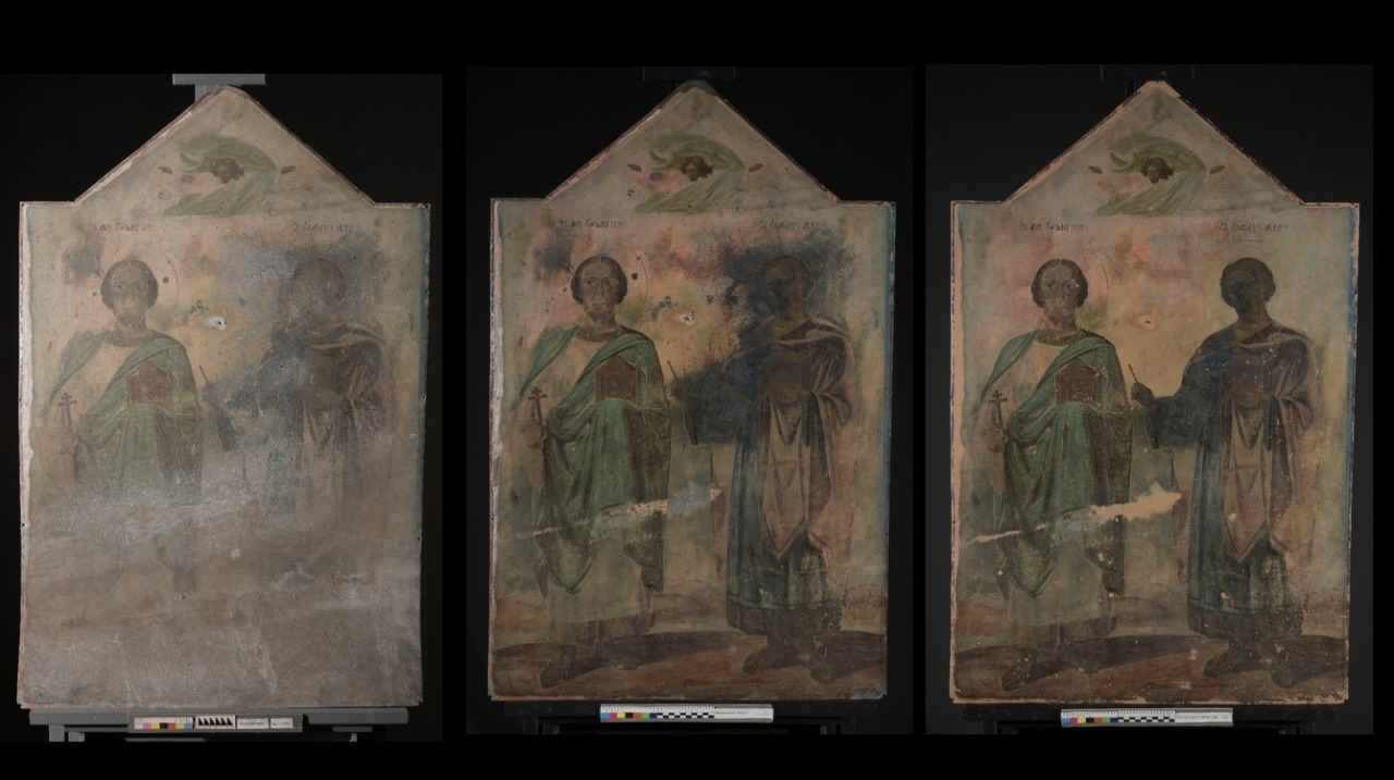 В Международном центре реставрации в Рождествено (Ленинградская область) завершается обновление иконы XIX века «Косьма и Дамиан» из собрания музея «Дом станционного смотрителя». Кропотливая работа продолжалась два года.