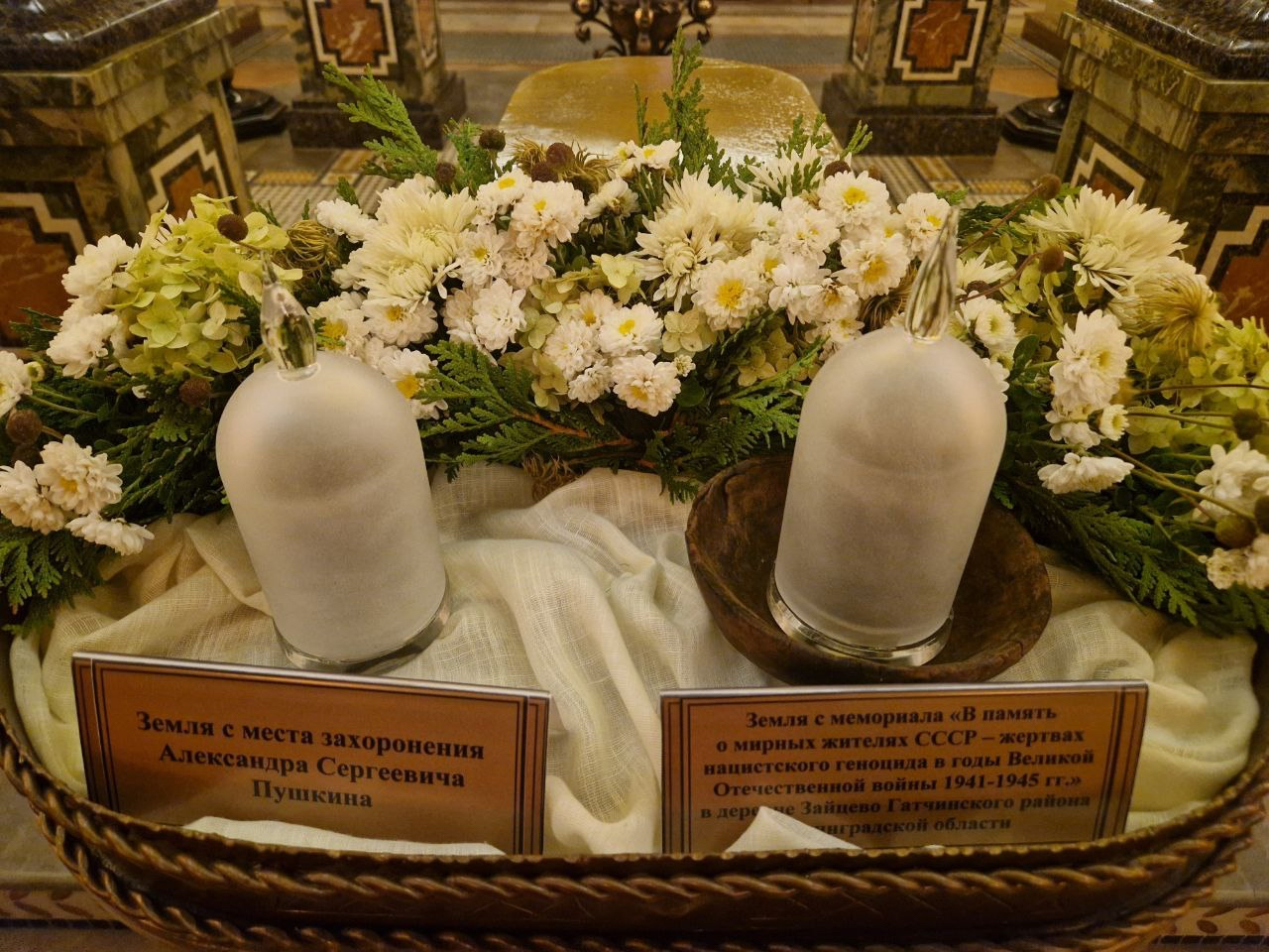 Председатель Леноблизбиркома Михаил Лебединский передал Храму-памятнику Всех Святых в Минске (Республика Беларусь) капсулу с землей из Ленинградской области. Ее привезли из поселка Зайцево (Гатчинский округ), где расположен мемориал мирным жителям - жертвам нацистского геноцида.