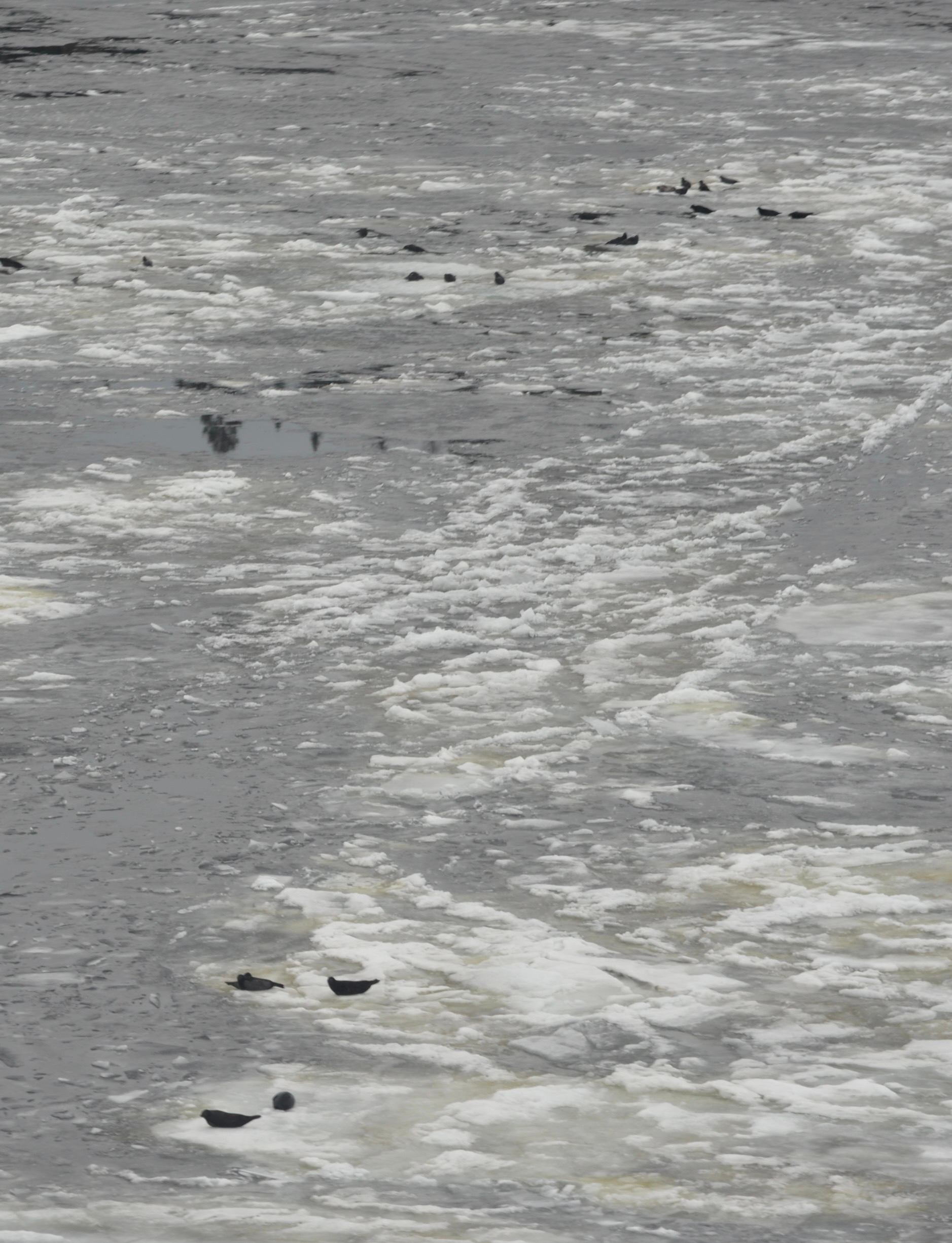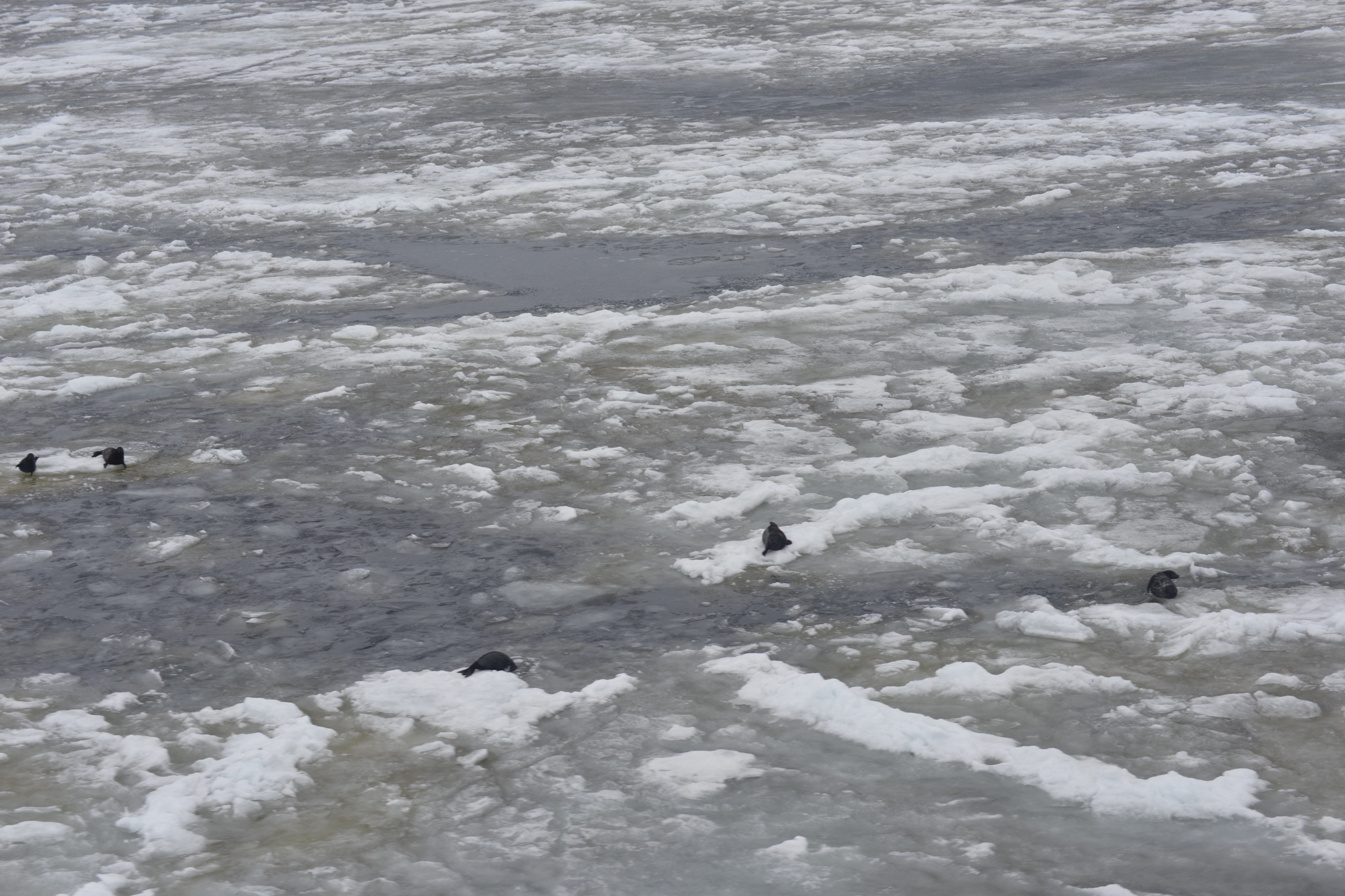 Большинство взрослых особей стараются не плавать и менять шерстный покров на поверхности льда. Ученых также интересовало, как нерпы расположены относительно туристических маршрутов, снегоходных и аэролодочных трасс, следы от которых еще видны на остатках льда.