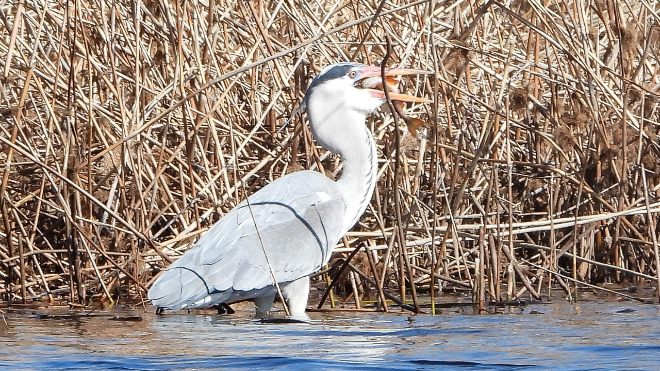 В Нижне-Свирском заповеднике запечатлели удачную рыбалку серой цапли