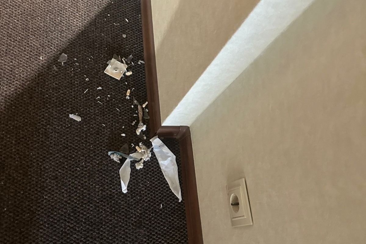 Выяснилось, что гостья распивала алкоголь, вела себя шумно и агрессивно. На замечание администратора она ответила разрушением имущества: повредила телевизор, сантехнику и натяжной потолок, сорвала шторы и дверные наличники, а стены номера испачкала помадой.