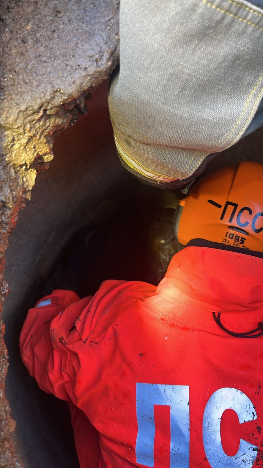 На помощь к малышу пришли спасатели дежурной смены пожарной станции №9. Они при помощи подручных средств извлекли из колодца котенка-замарашку.