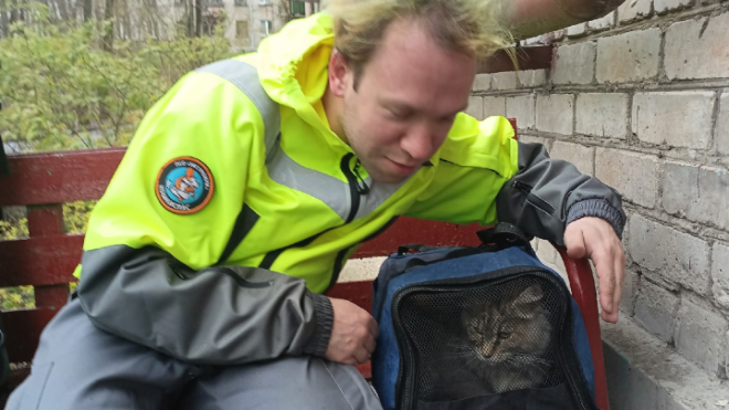 Сотрудники «Кошкиспаса» провели сложную операцию по спасению кота, который провел 12 часов в ловушке на балконе четвертого этажа в квартире на проспекте Тореза в Санкт-Петербурге. Хозяин уехал, оставив балконную дверь в режиме вертикального проветривания. Пытаясь забраться обратно, животное соскользнуло и застряло лапой в щели между дверью и косяком.