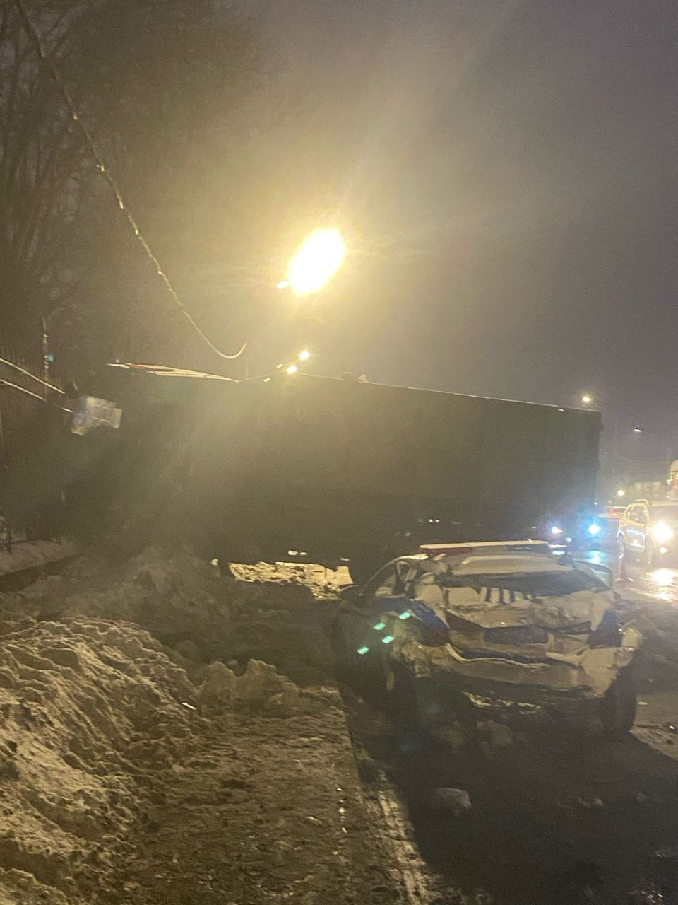 На месте происшествия прибыли два экипажа Госавтоинспекции. В момент оформления аварии в один из стоящих на проезжей части служебных автомобилей въехал мусоровоз. По инерции патрульная машина врезалась в другой автомобиль дорожных полицейских.
