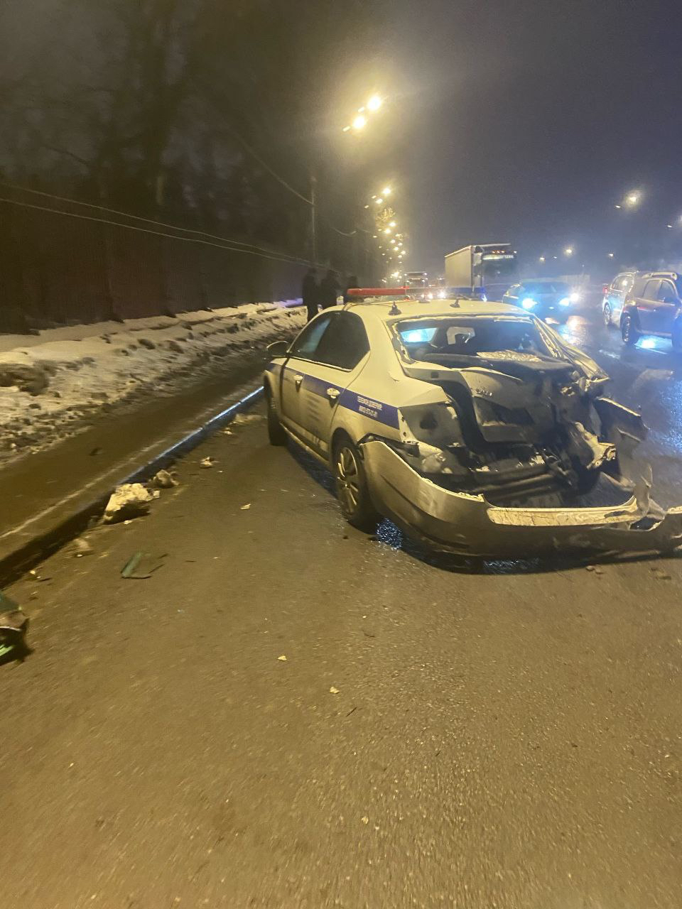 В результате этого ДТП пострадал один из сотрудников полиции. Его госпитализировали с различными травмами. Еще двое инспекторов после осмотра медиков были направлены на амбулаторное лечение.