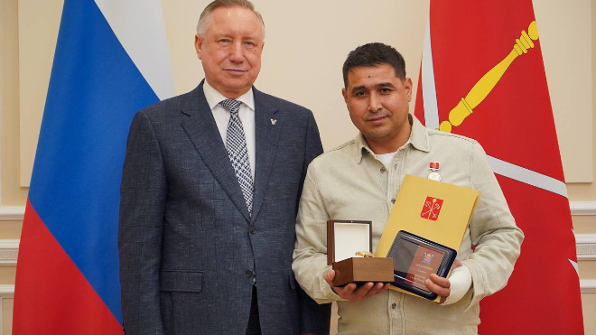 Александр Беглов вручил Хайрулло знак отличия «За доблесть в спасении» и памятные часы. Церемония состоялась в Смольном, - рассказали в пресс-службе губернатора Санкт-Петербурга.