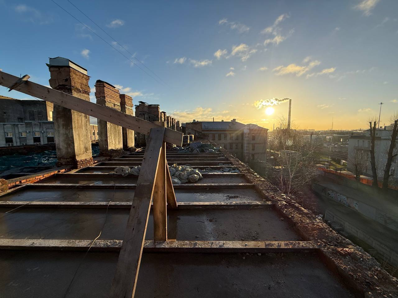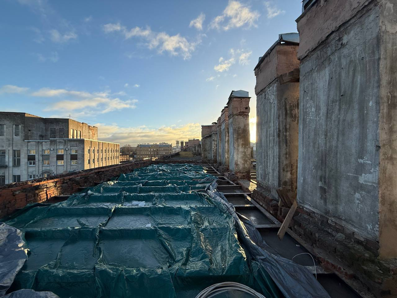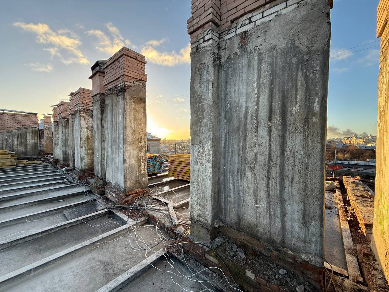 В Санкт-Петербурге продолжается реконструкция здания общежития Ленинградского областного колледжа культуры и искусства. В настоящий момент подрядчик полностью заменил чердачное перекрытие.