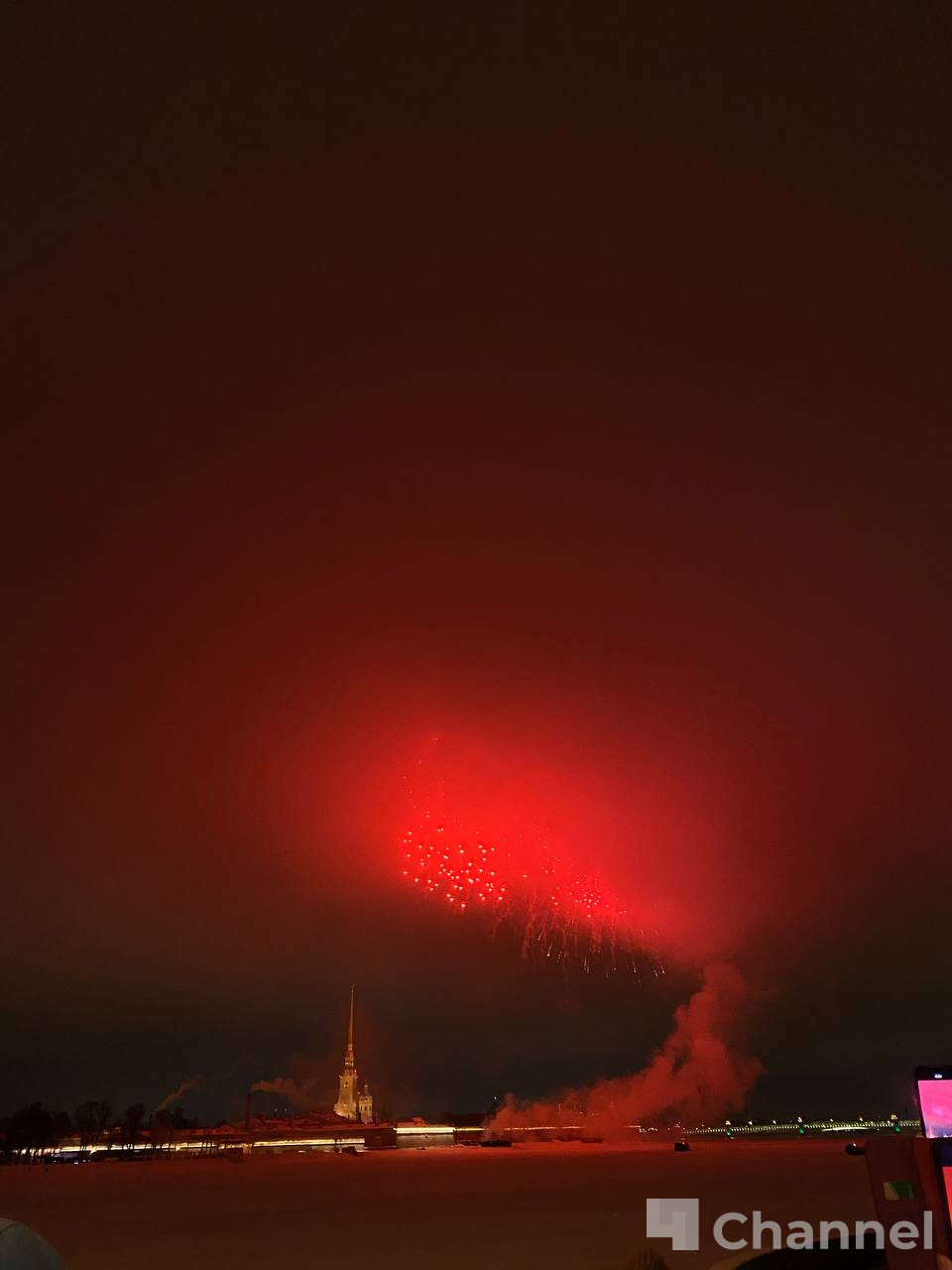 Салют начался в 21:00. Жители и гости города традиционно смотрели на фейерверк со стрелки Васильевского острова и Дворцовой набережной, откуда открываются лучшие виды.