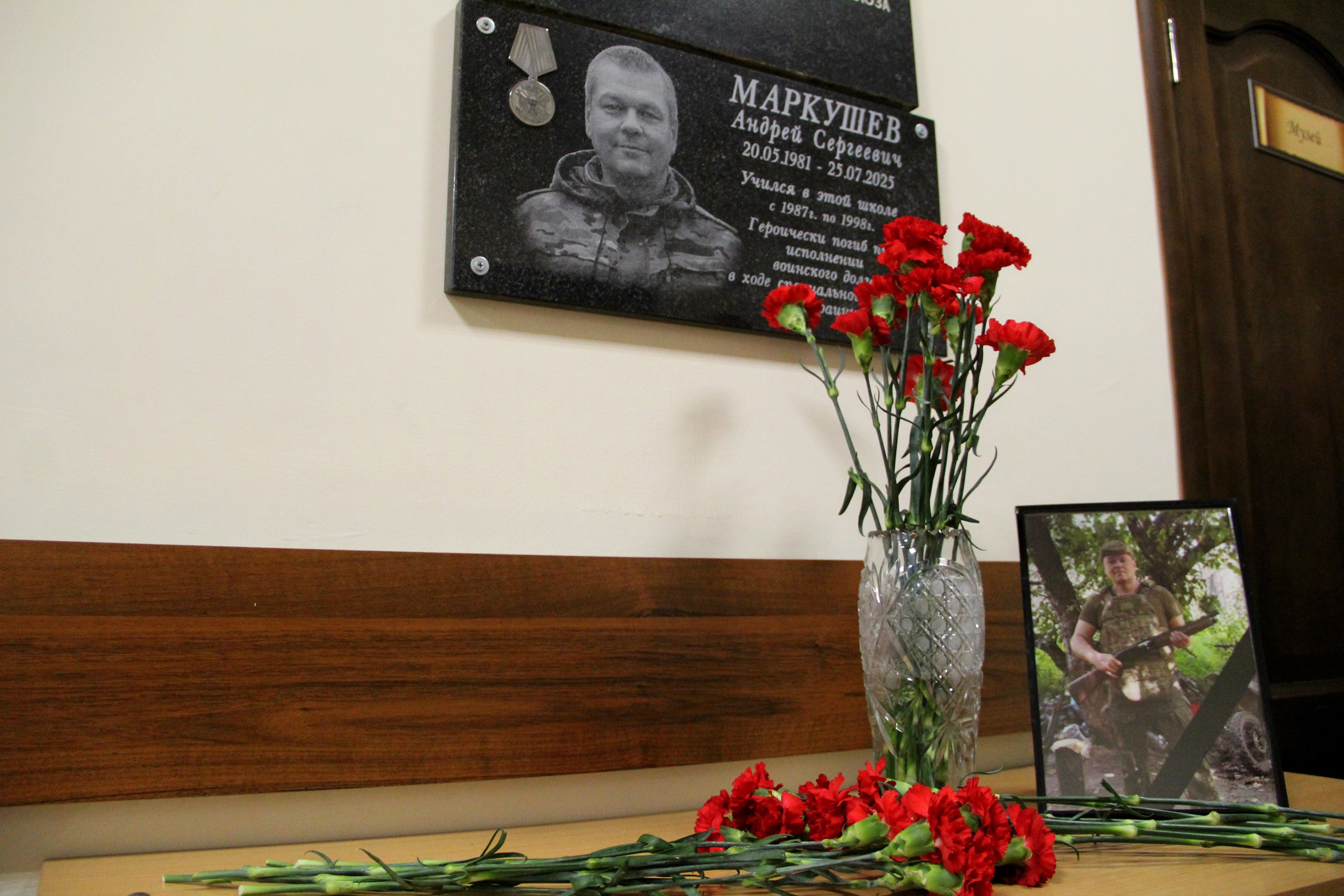 В четверг, 19 марта, в Подпорожской школе №1 имени А.С. Пушкина состоялось торжественное открытие мемориальной доски и «Парты героя» в честь выпускника образовательного учреждения Андрея Маркушева. Ленинградец погиб в зоне специальной военной операции.