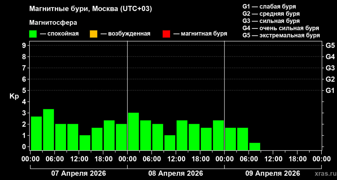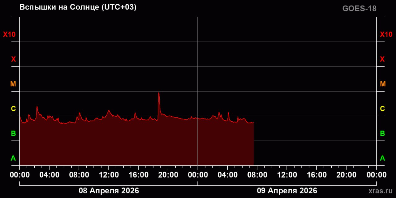 В четверг, 9 апреля, космическая погода - спокойная. За прошедшие сутки геомагнитная обстановка оставалась стабильной, вспышечная активность на Солнце - слабо повышенной, отмечает Лаборатория солнечной астрономии (ИКИ РАН и ИСЗФ СО РАН).