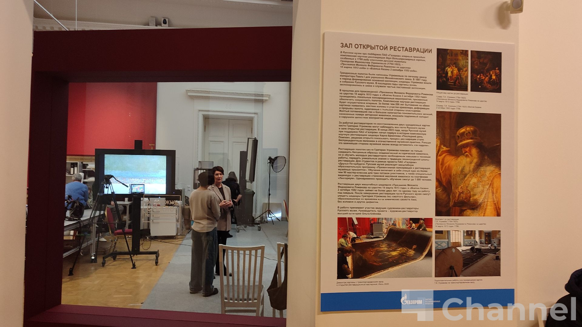 В Государственном Русском музее провели открытый урок по реставрации картин Григория Угрюмова "Взятие Казани Иваном Грозным" и "Призвание Михаила Федоровича Романова на царство". Эти полотна, созданные по заказу Павла Первого в 1801 году, сейчас проходят комплексную реставрацию лучшими специалистами музея при поддержке ПАО "Газпром".