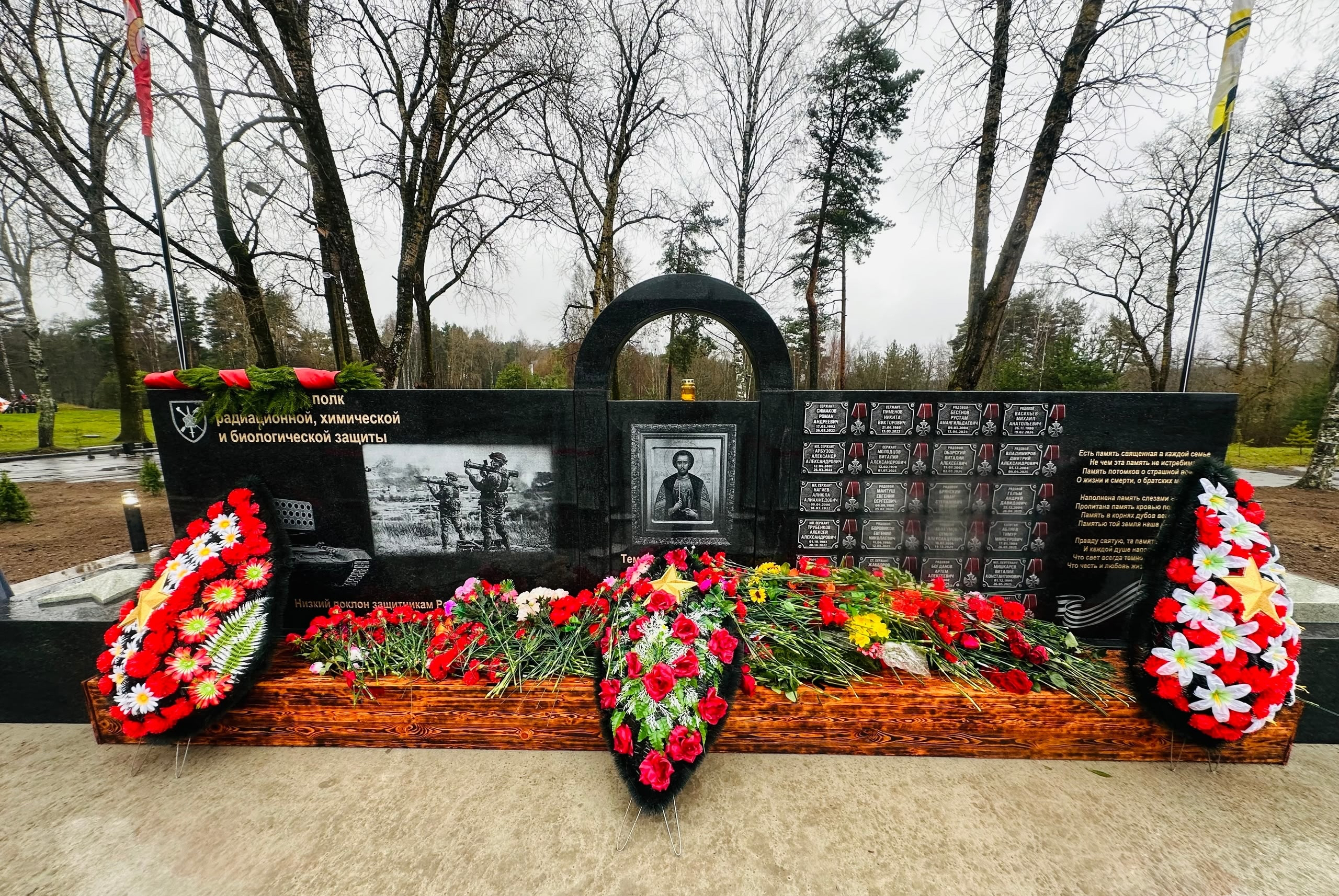 В поселке Саперное (Приозерский район Ленинградской области) состоялось торжественное открытие мемориала, посвященного памяти 25 военнослужащих 6-го гвардейского полка радиационной, химической и биологической защиты. Защитники Родины погибли в ходе специальной военной операции.