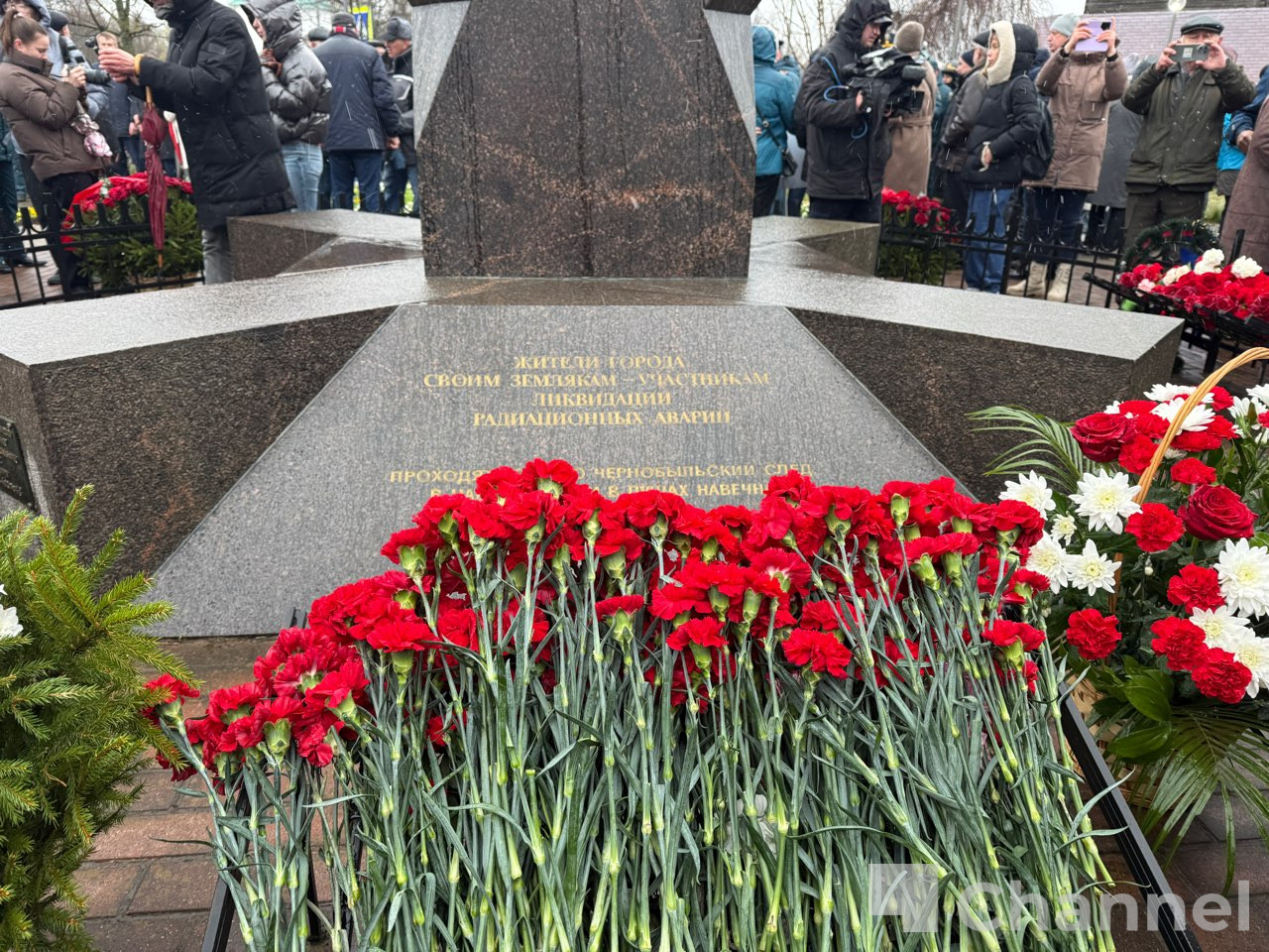 Затем присутствующие возложили цветы и венки к монументу, посвященному ликвидаторам последствий радиационных катастроф — не только на Чернобыльской АЭС, но и других ядерных аварий. На гранитных плитах здесь увековечены 1587 имен.