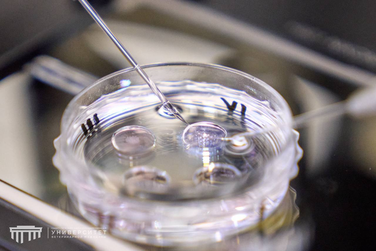 Специалисты СПбГУВМ совместно с аграриями племзавода "Бугры" вывели в лаборатории теленка. Малыш получен методом экстракорпорального оплодотворения (IVP).