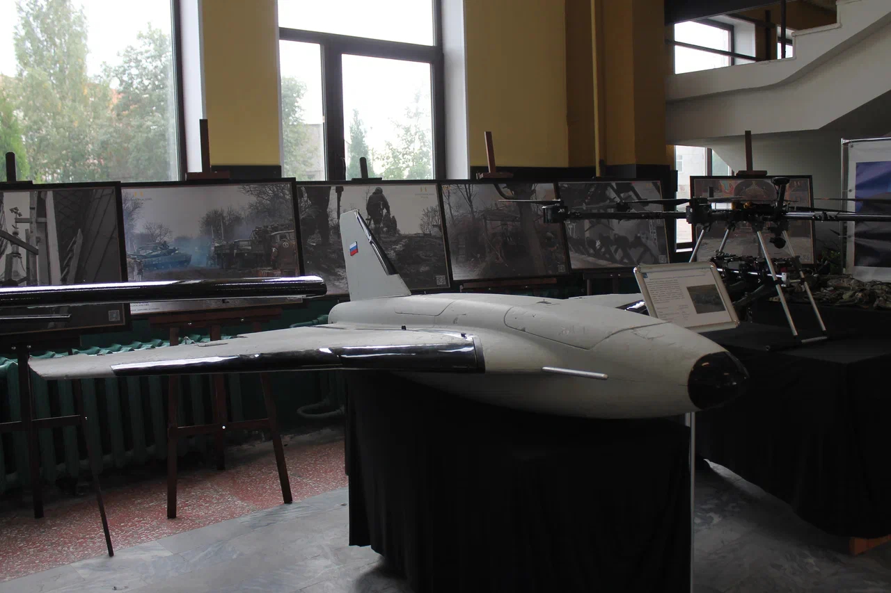 Посетители могут рассмотреть и добытые трофеи бойцами 47 региона, а именно образцы вражеских беспилотников, шевроны националистических батальонов и другое.