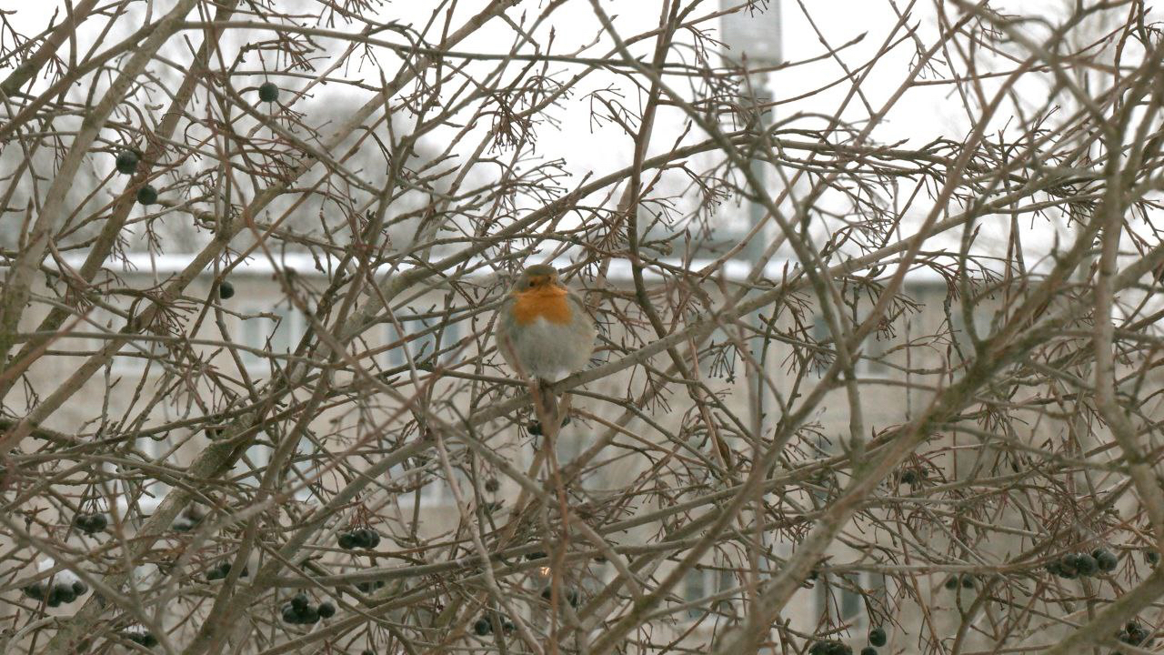 В усадьбе Сосновка в Петербурге на зимовку осталась зарянка