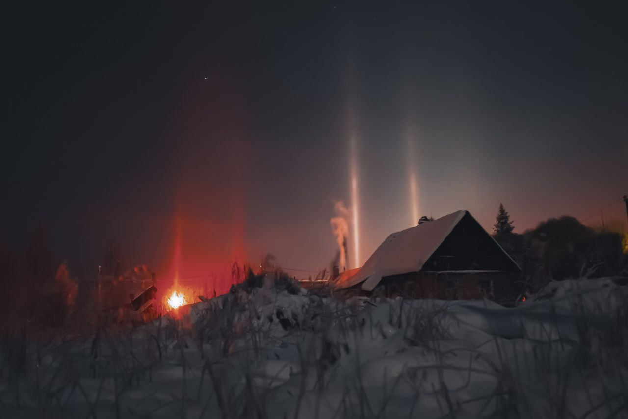 В Вартемягах любовались на солнечное и лунное гало, а еще появились столбы