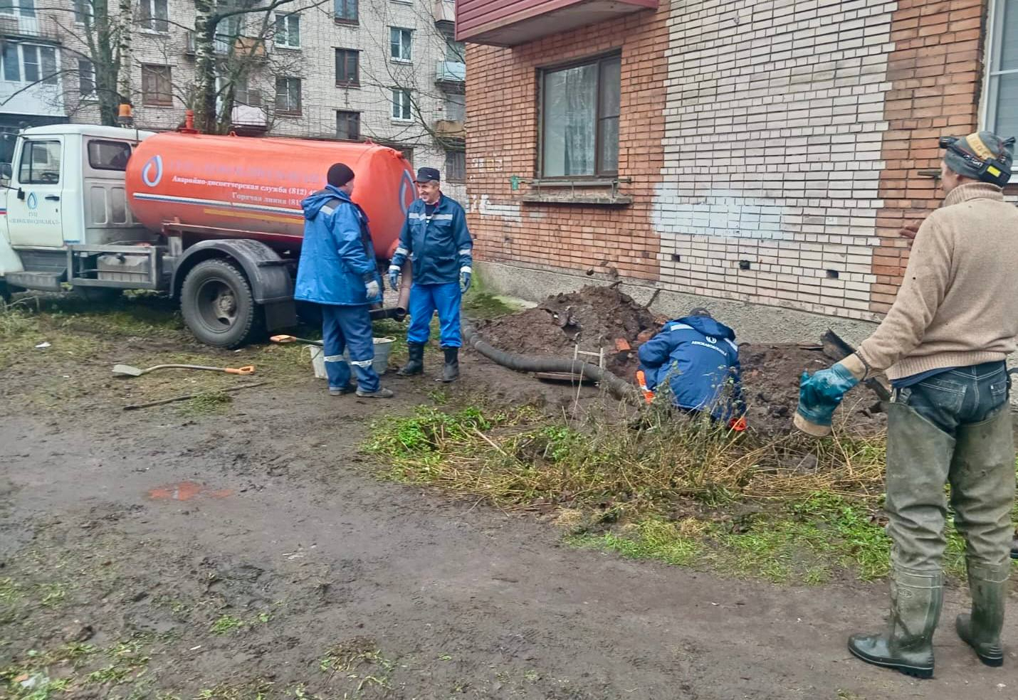 К настоящему времени основной объем воды откачан, подвал просушивается и будет санобработан, канализационный выпуск заменён ООО "Энергопроект Выборг". Также ГУП "Леноблводоканал" промыл колодцы на прилегающей территории.