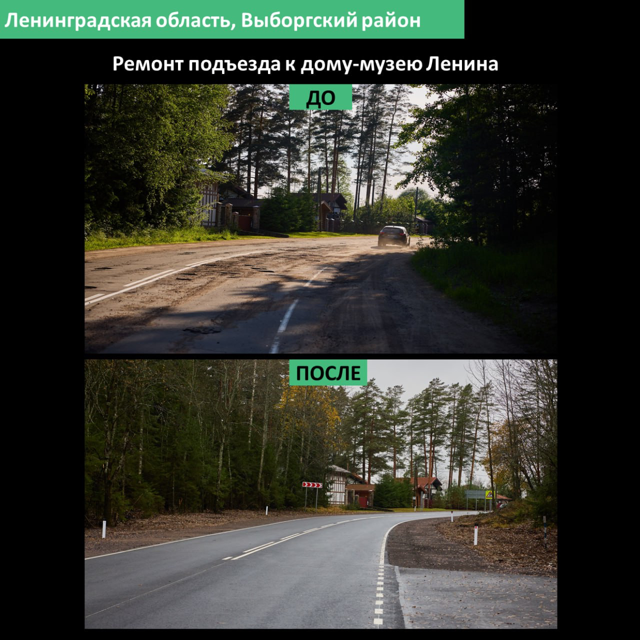 Работы проводились по поручению губернатора Ленинградской области Александра Дрозденко. Подъезд к дому-музею В.И. Ленина обновили в рамках национального проекта «Инфраструктура для жизни».