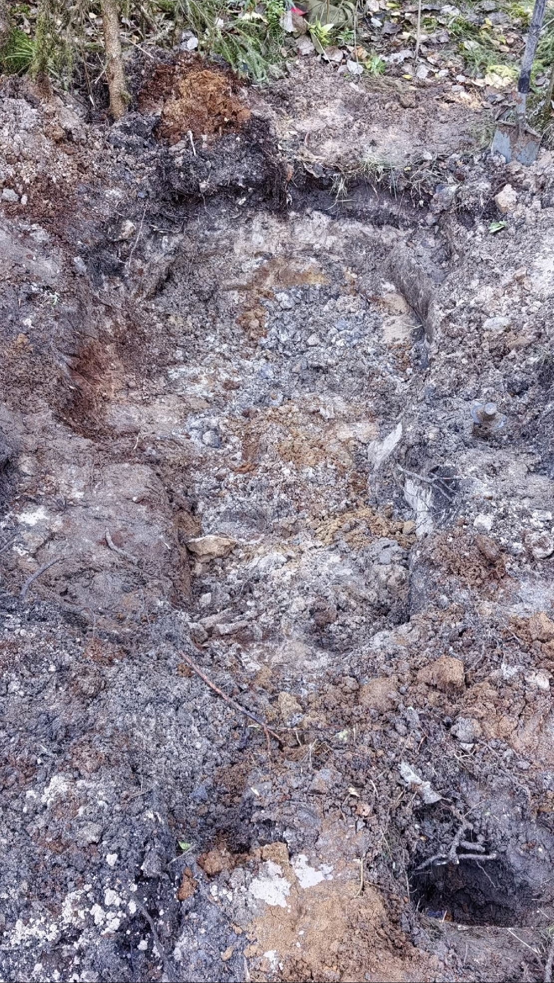 Из земли были подняты останки красноармейцев, погибших в 1941 году при выходе из окружения из поселка Вырица. Солдаты не смогли пересечь дорогу, контролирующую немцами.