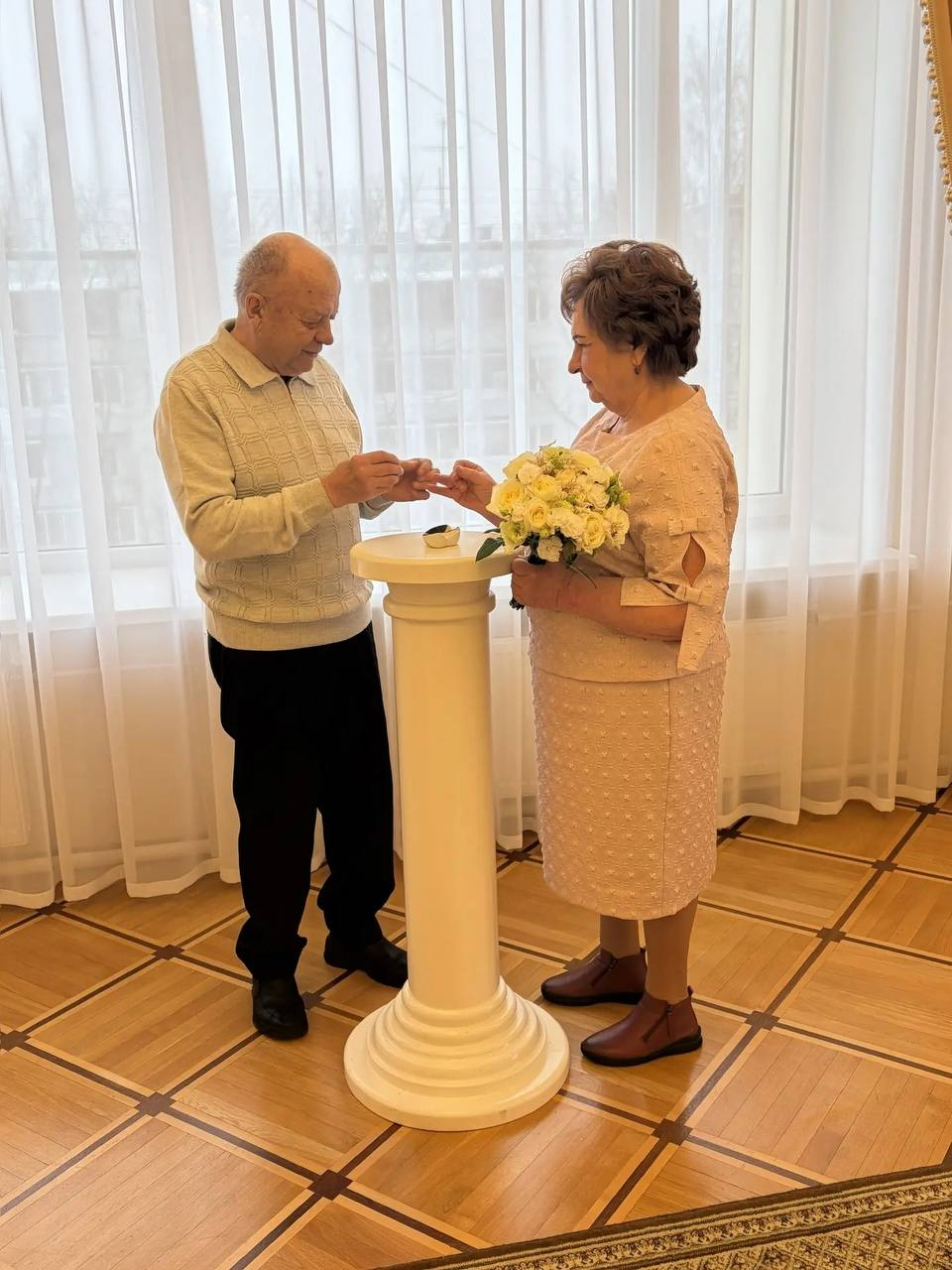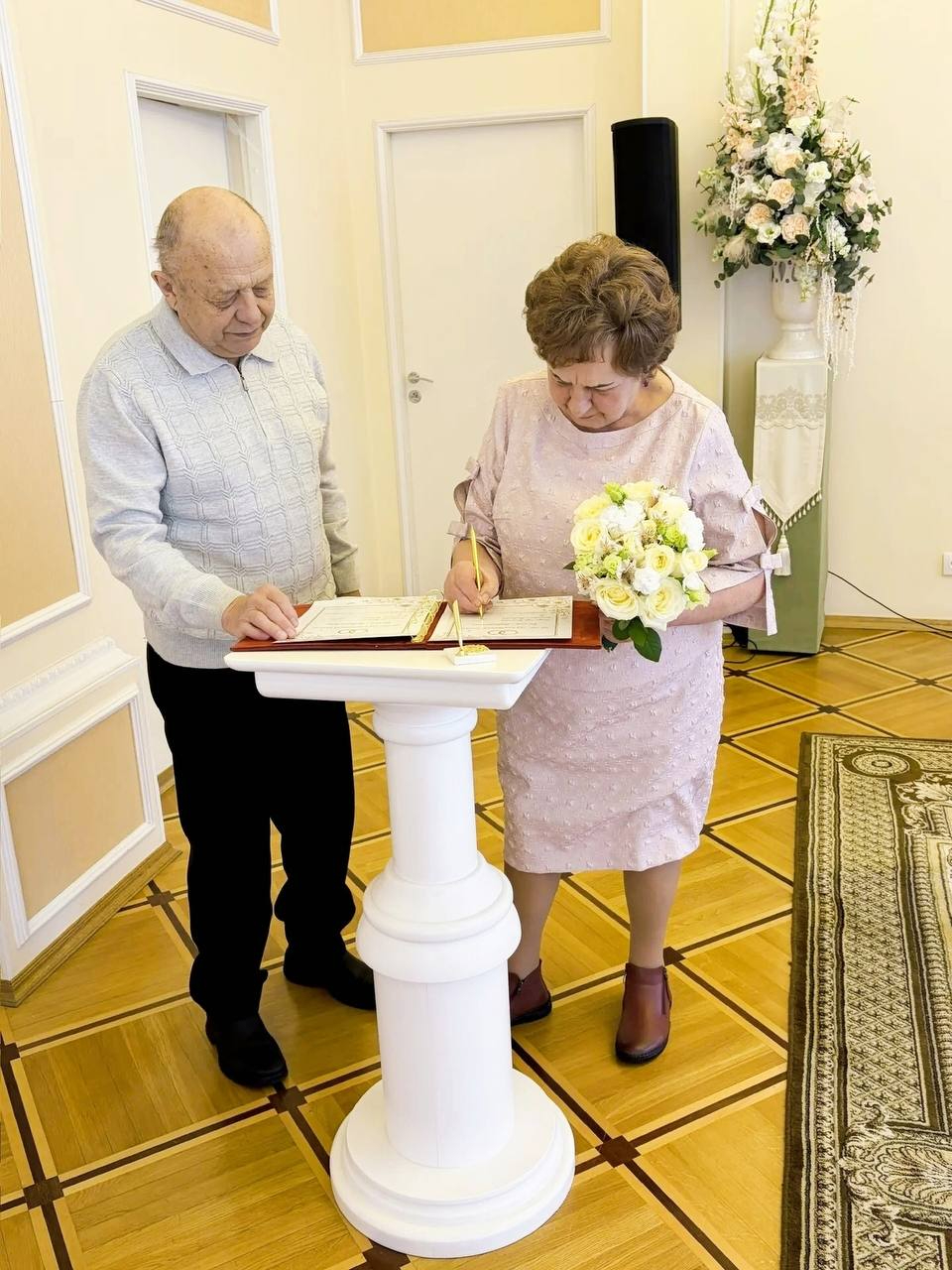 В управлении ЗАГС Тосненского района чествовали изумрудных юбиляров семейной жизни — Елизавету Яковлевну и Владимира Яковлевича Лабастовых, которые 55 лет назад, 26 февраля 1971 года, зарегистрировали свой брак.