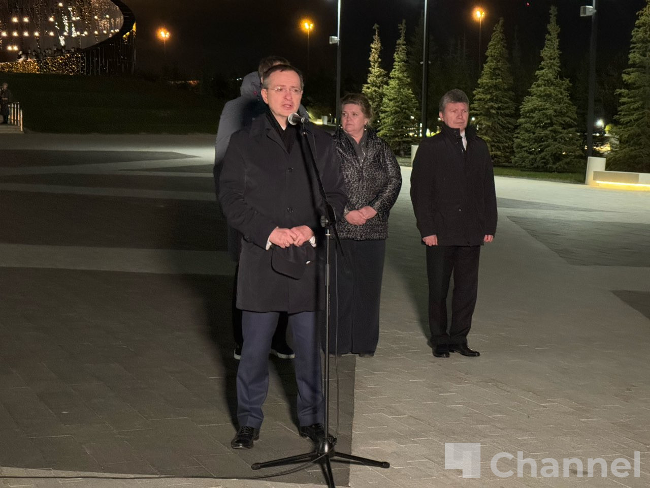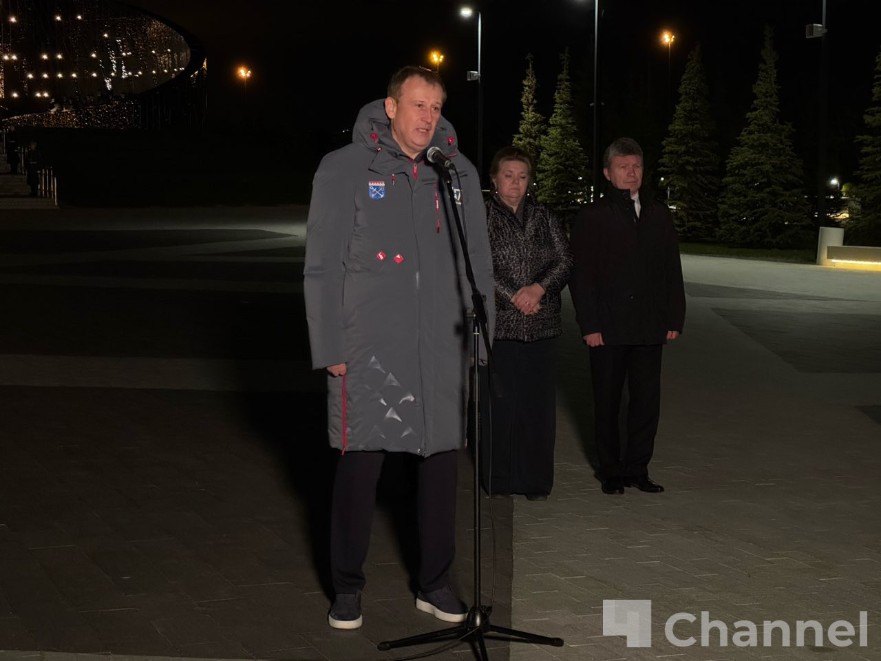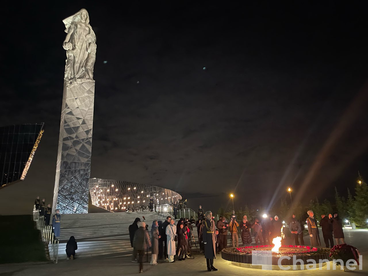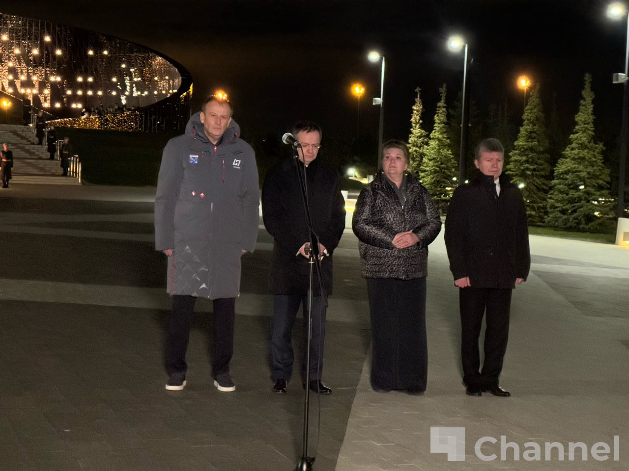 Официальные лица и участники церемонии возложили цветы к Вечному огню и почтили память погибших советских граждан минутой молчания.