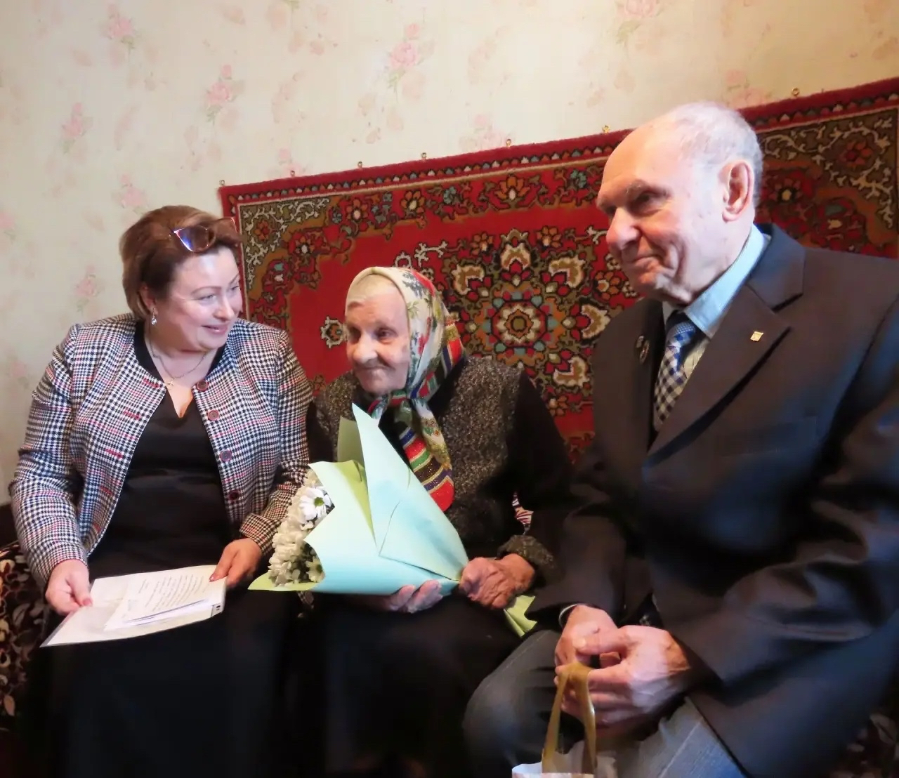 Зинаиду Тимофеевну также навестила глава администрации Сланцевского района Марина Чистова. Она передала юбилярше цветы и подарки, а также пожелала имениннице сохранять бодрость и силы, а также беречь тепло души.