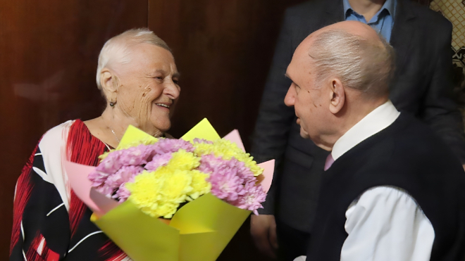 Екатерину Алексеевну также поздравил губернатор Александр Дрозденко. Цветы и памятные подарки имениннице передали глава Сланцевского района Вадим Богданов, председатель совета ветеранов Станислав Сиряк и коллеги по службе в ОВД Сланцевского района.