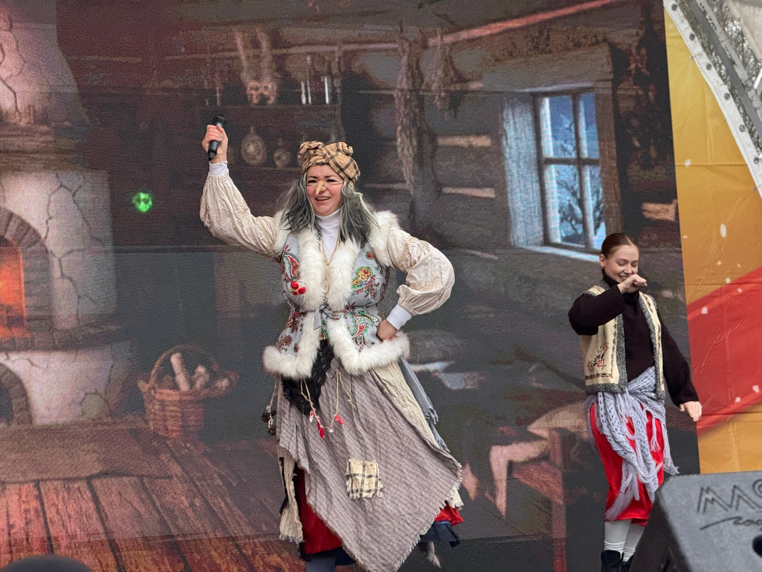 В парке «Песчанка» развернулась насыщенная развлекательная программа. Для зрителей организовали представление с участием символа уходящего года - Мудрой змеи, кота Матроскина, Бабы Яги и персонажей сказки «Двенадцать месяцев».