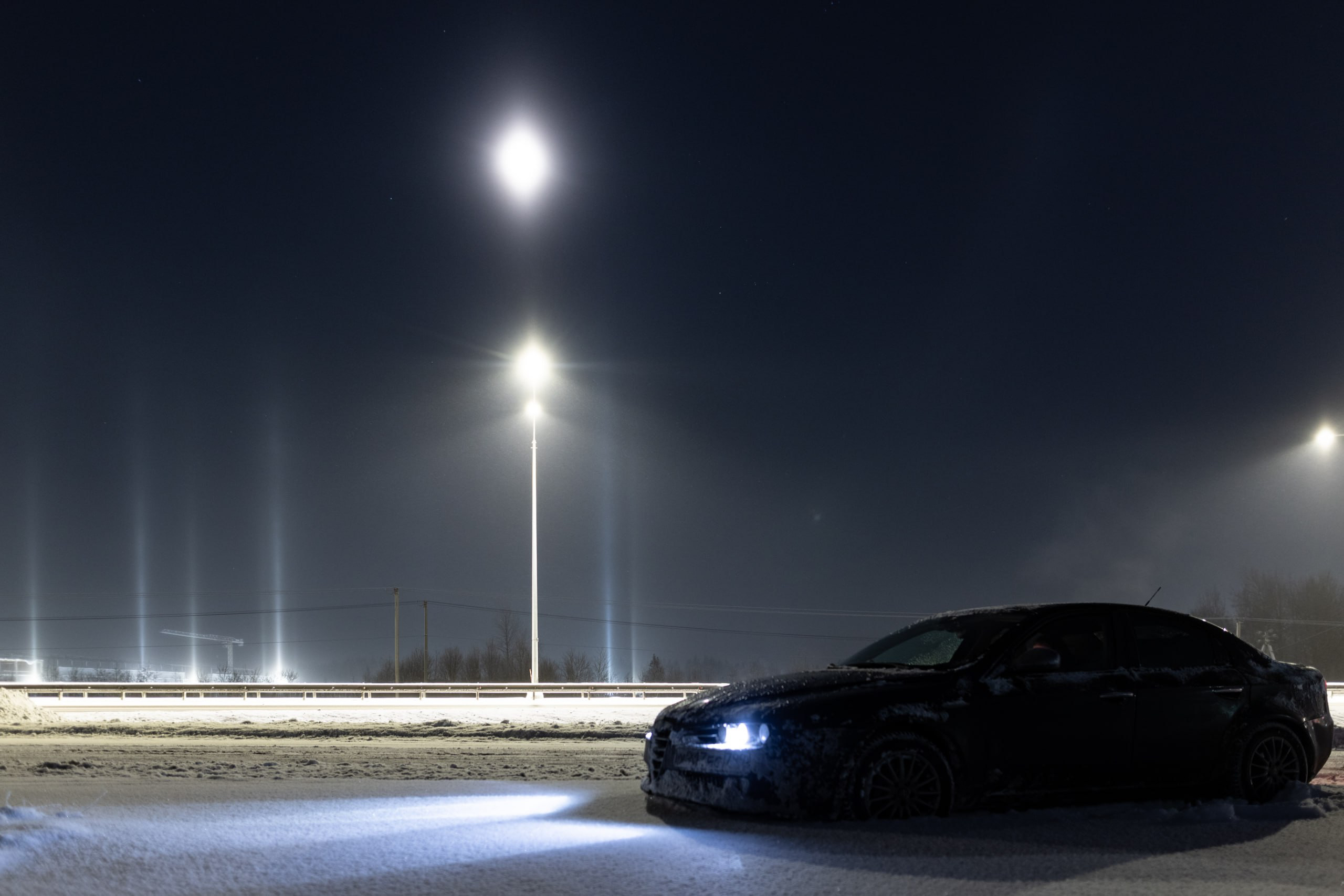 Для наблюдения световых столбов необходимы сильные морозы и высокая влажность. Например, 1 января температура воздуха в Ленобласти составляла от -14 до -22 градусов.