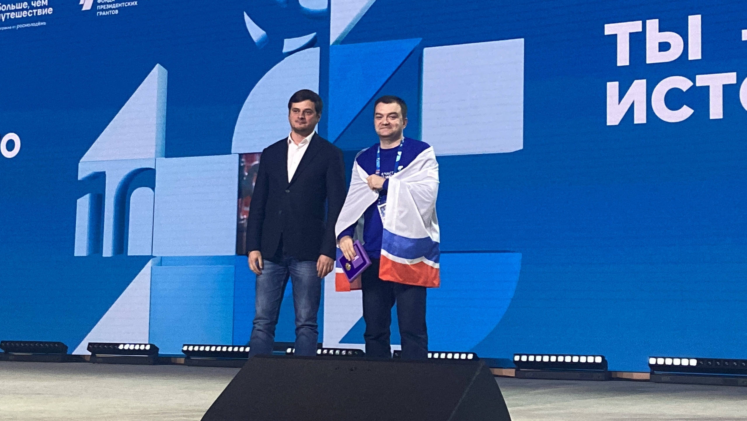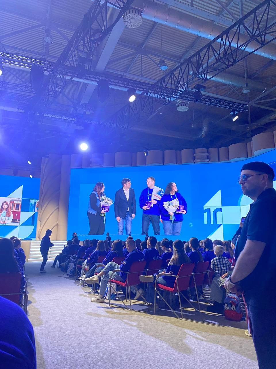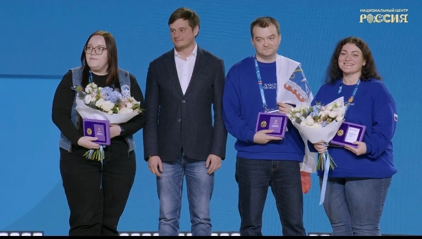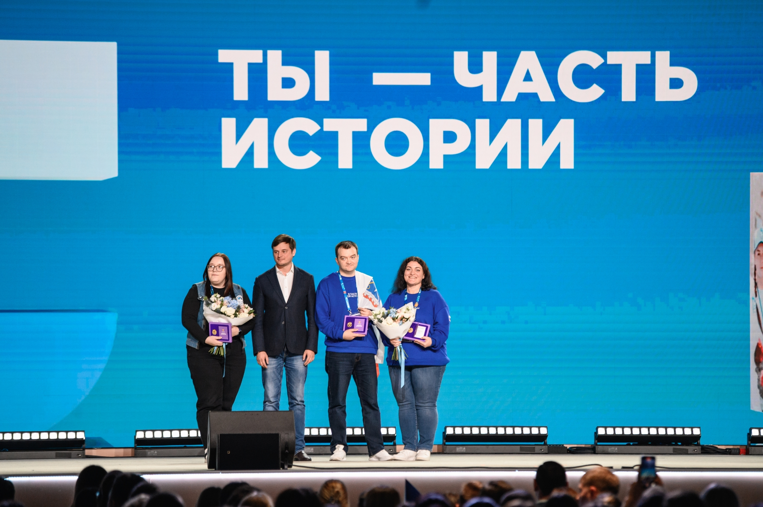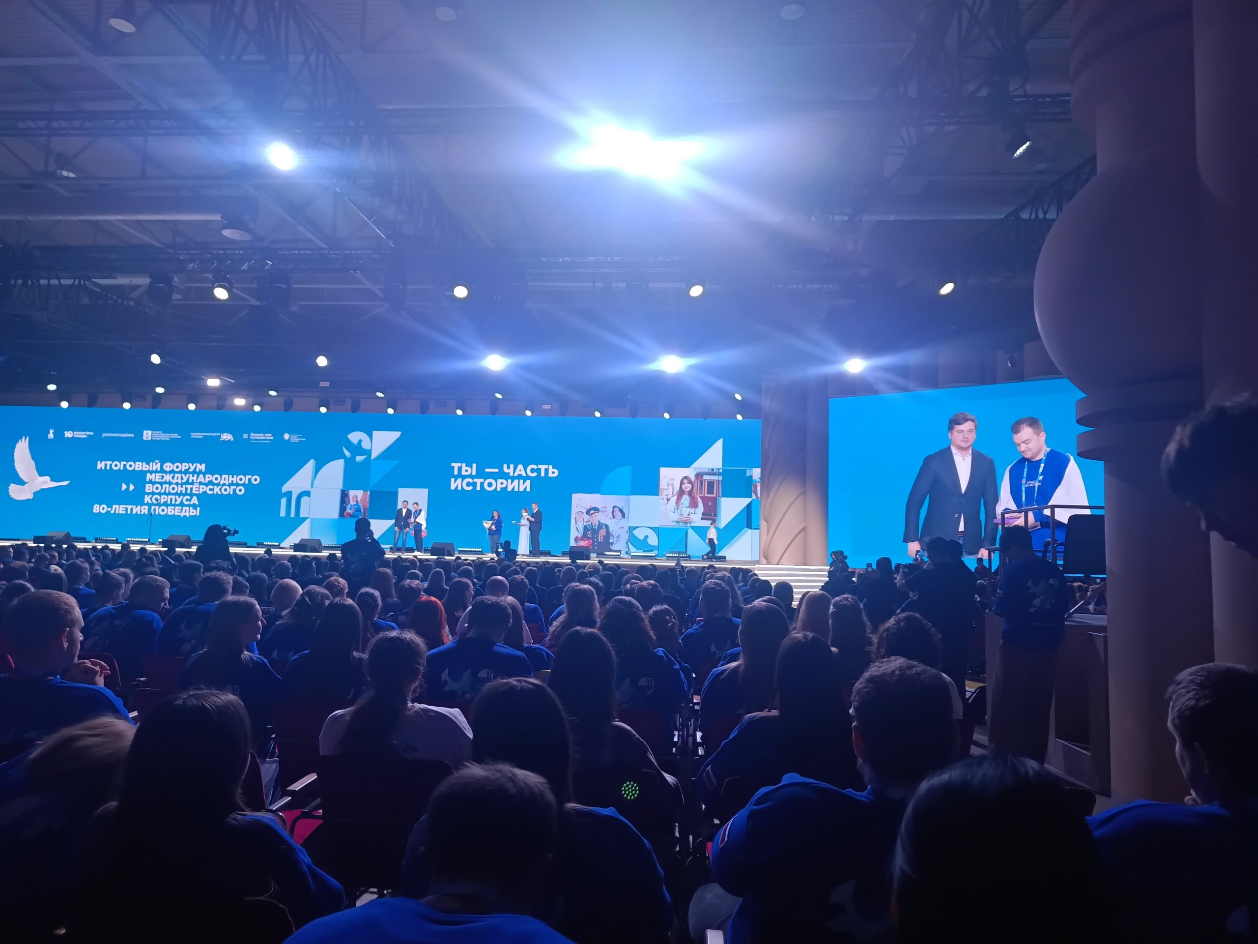 В Москве на Итоговом форуме Международного волонтерского корпуса 80-летия Победы состоялась церемония вручения знаков «Доброволец России». Награды был удостоен активист из Ленинградской области Артем Пастухов.