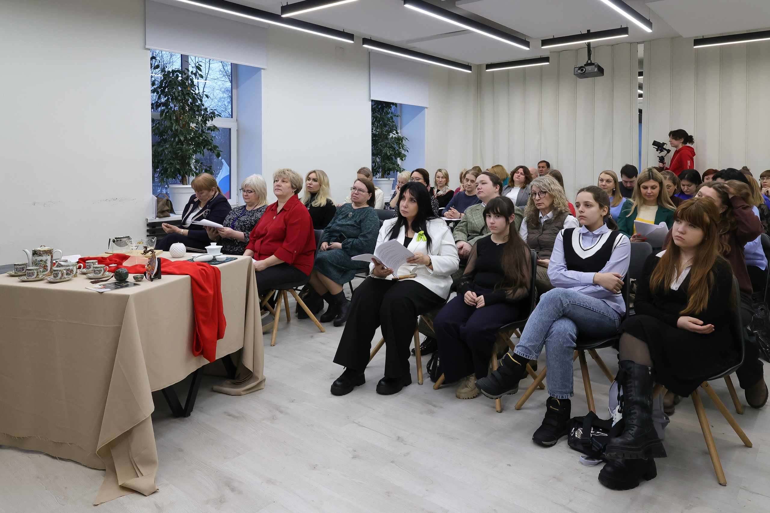 В коворкинге Дома молодежи собрались сотрудники образовательных и культурно-досуговых учреждений Выборгского района, активисты «Движения Первых» и молодежь. Представителей Ленобласти с китайской стороны приветствовали официальные лица и специалисты по ведению чайной церемонии.