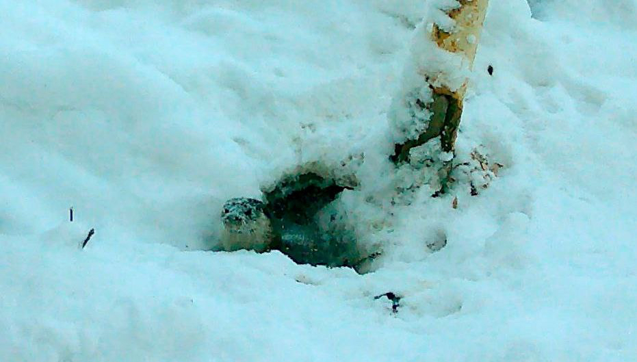 Выдра из Ленобласти ищет жениха и умывается снегом - видео