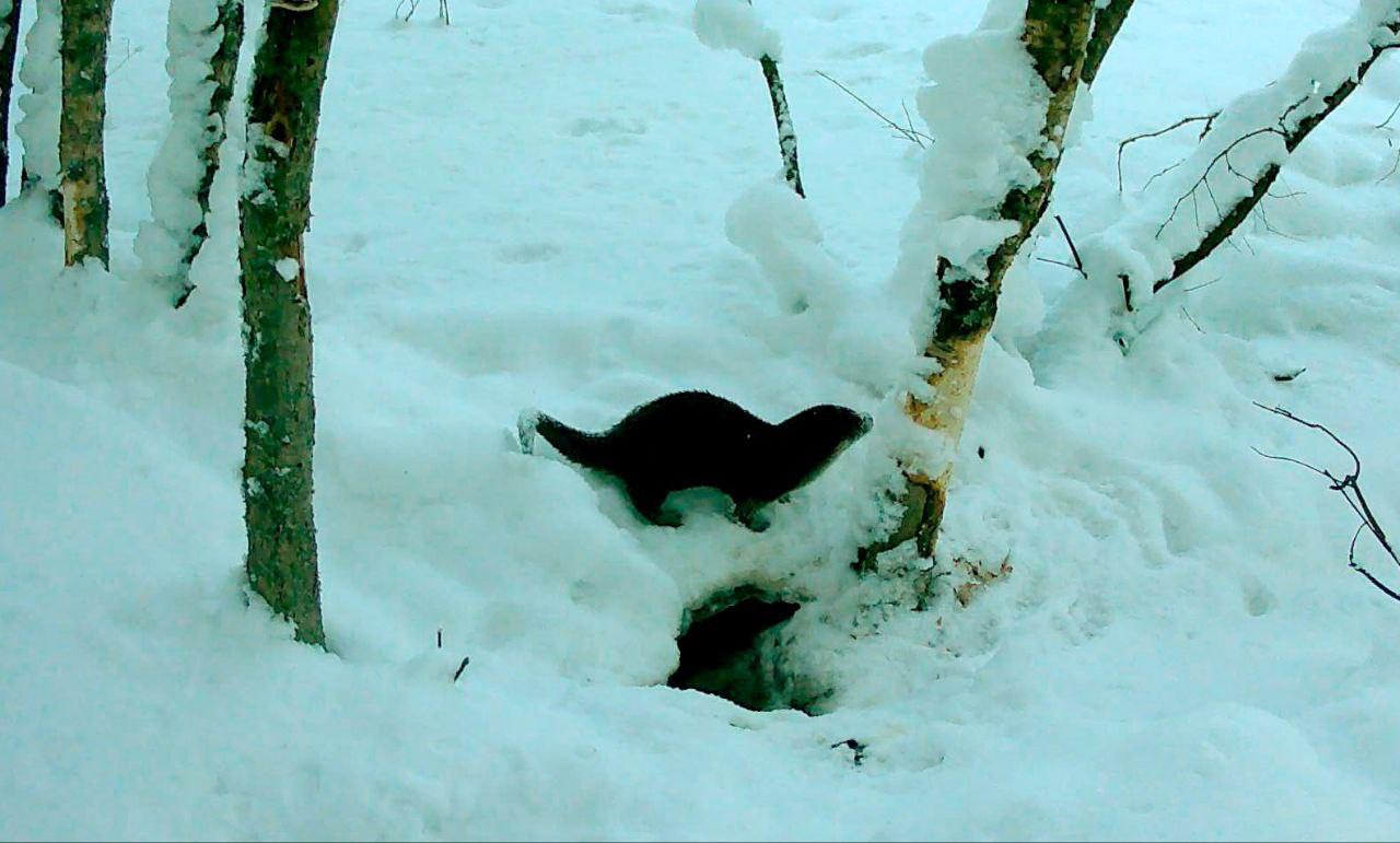 В настоящий момент у выдр в самом разгаре брачный сезон. Судя по поведению, на видео удалось запечатлеть осторожную самку. Она заметно суетилась у норы, стараясь оставить как можно больше следов, чтобы привлечь жениха.