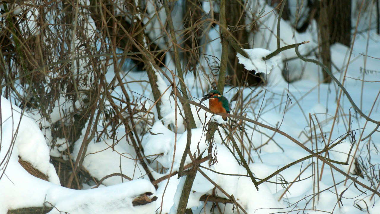 Несмотря на январские морозы, в одном из парков на юго-западе Санкт-Петербурга был замечен тропический красавец - обыкновенный, или голубой, зимородок. Птица размером чуть больше воробья и ярким оперением выглядит в заснеженном городе как новогоднее чудо.