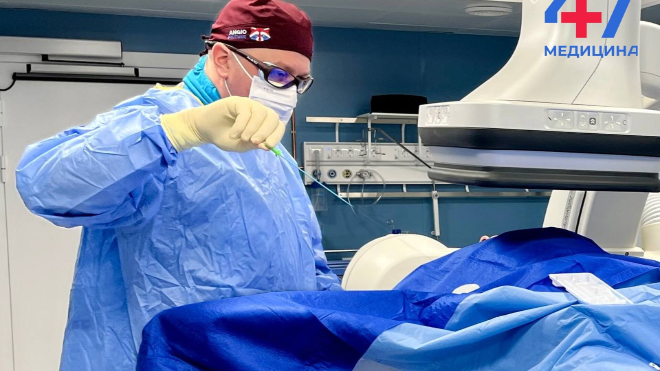 Мужчине провели экстренную эндоваскулярную тромбэкстракцию. Через небольшой прокол в бедренной артерии врачи под рентген-контролем подвели катетер к тромбу и удалили его, восстановив кровоток по артериям головного мозга. Операцию выполнили заведующий отделением рентгенохирургии Дмитрий Моносов и невролог Инна Титова.