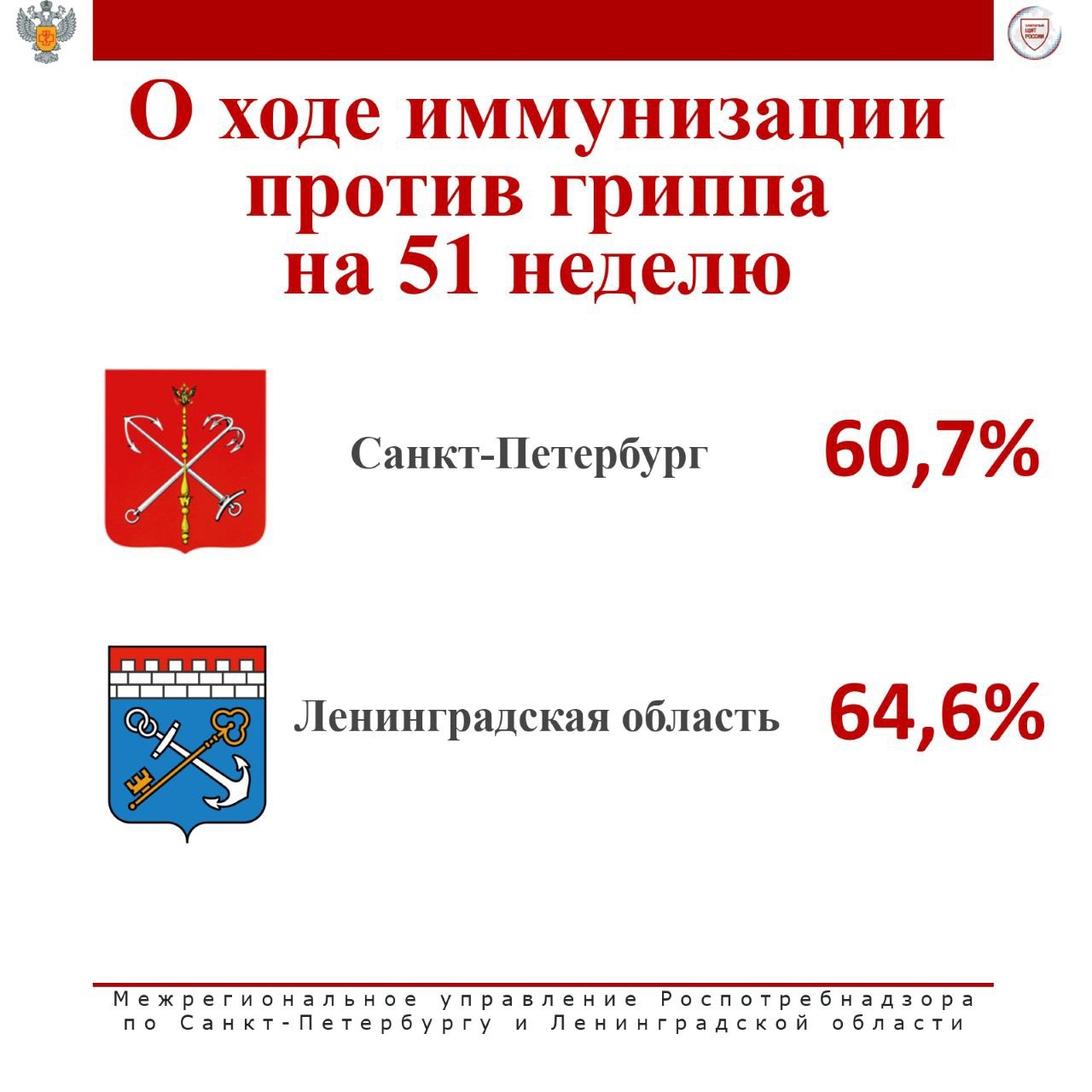 В Петербурге против гриппа привито 60,7% населения. В Ленобласти вакцинацию прошли 64% жителей. В образовательных организациях обоих регионов проводятся утренние фильтры. Если заболеваемость гриппом и ОРВИ составляет более 20%, занятия приостанавливаются.