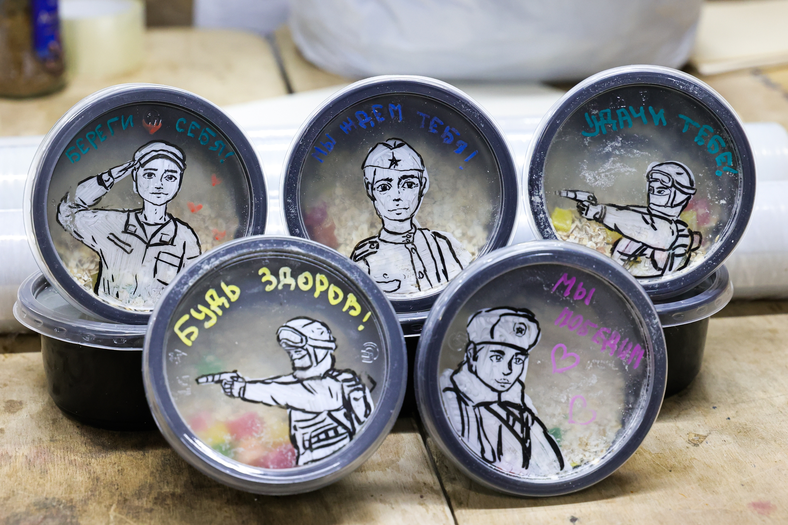Волонтеры отправили на фронт около ста маскировочных сетей, большое количество антидроновых одеял, пончо и плащ-палаток. Бойцы также получат сухпайки и домашние заготовки - 80 килограммов квашеной капусты, супы и каши, которые помогли приготовить воспитанники детских садов и школ.