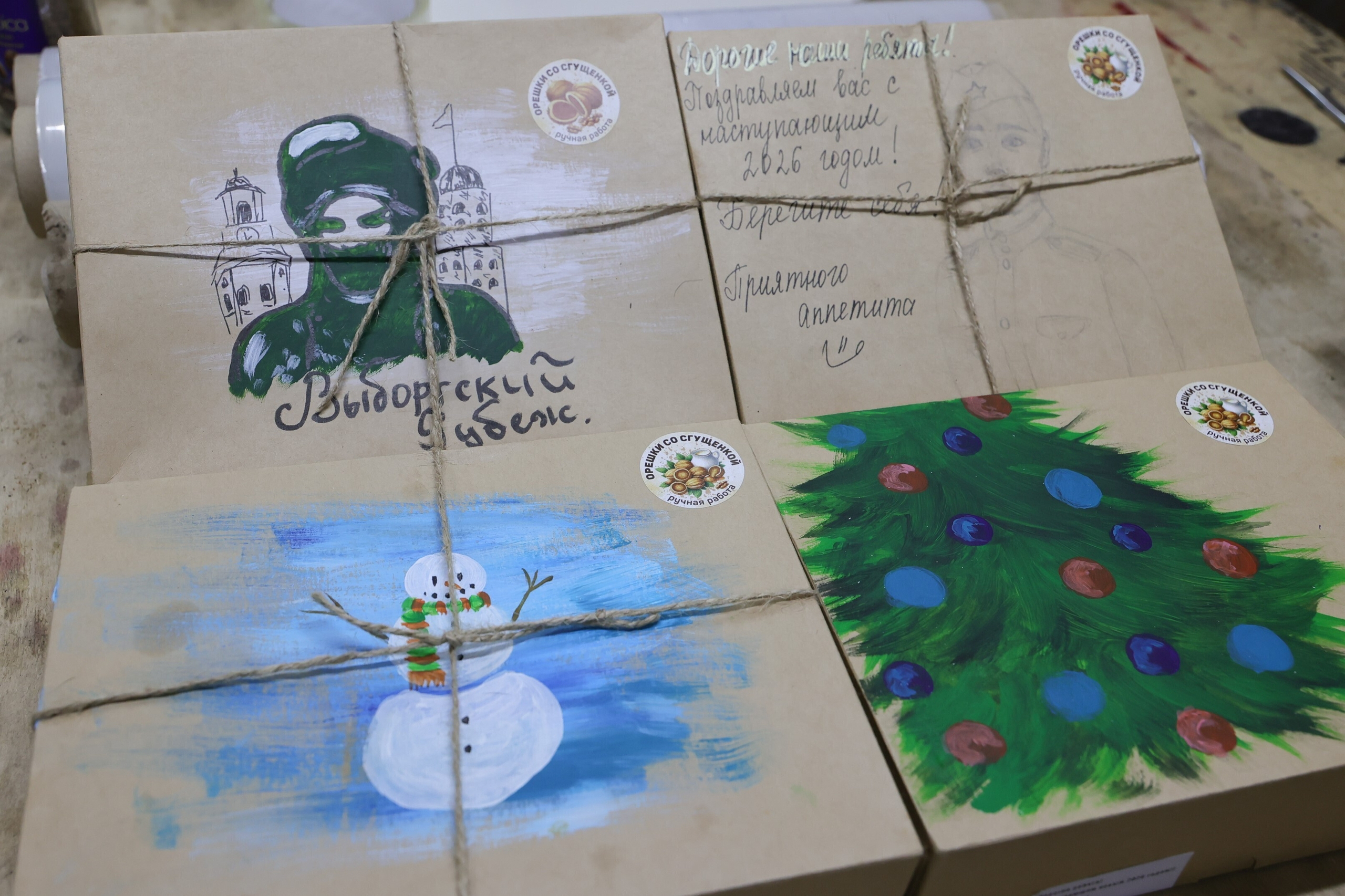 Волонтеры также не забыли о новогодних подарках для участников спецоперации. Как рассказали во вторник, 16 декабря, в фонде «Выборгский рубеж», бойцам отправили домашние орешки со сгущенками, упакованные в коробки, украшенные тематическими рисунками и добрыми пожеланиями.