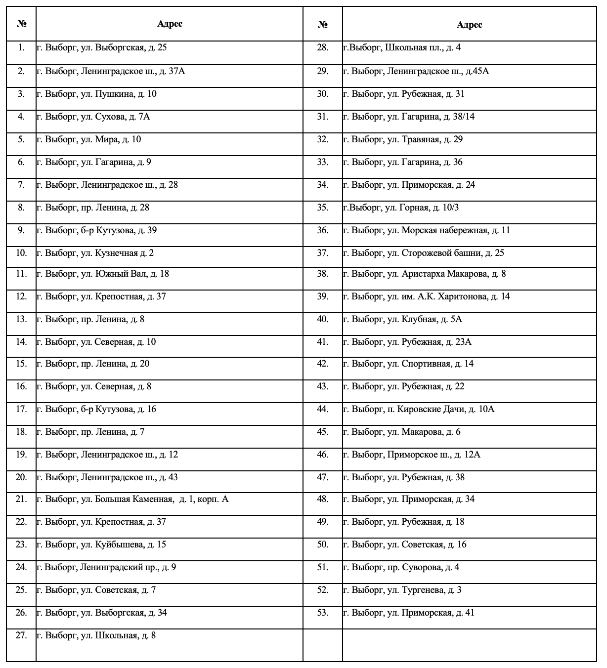 Жители и гости города могут ознакомиться с полным перечнем убежищ в таблице ниже. Для удобства также доступна интерактивная карта, где отмечены все защитные сооружения и заглубленные помещения. Она опубликована на сайте администрации Выборгского района.